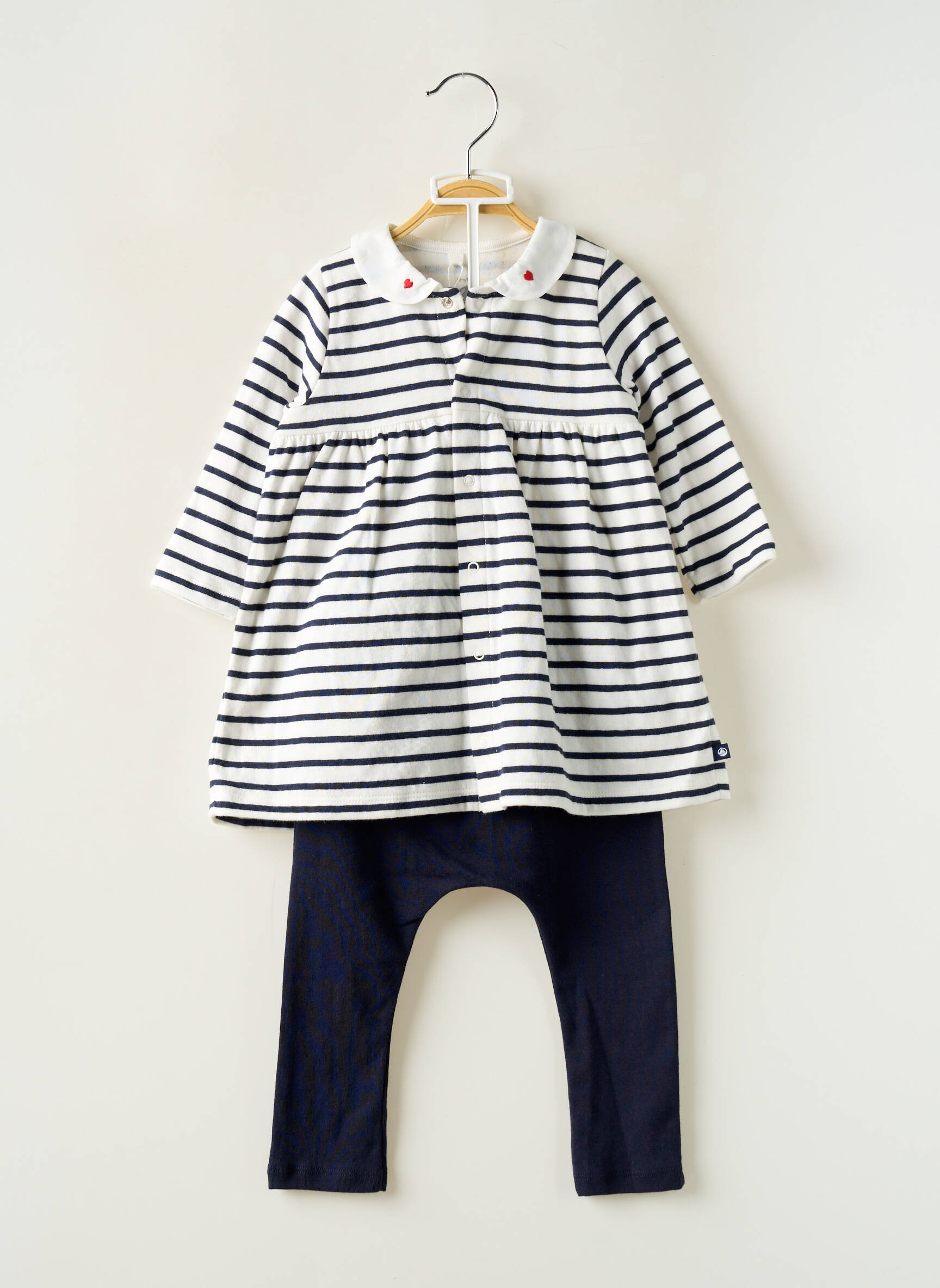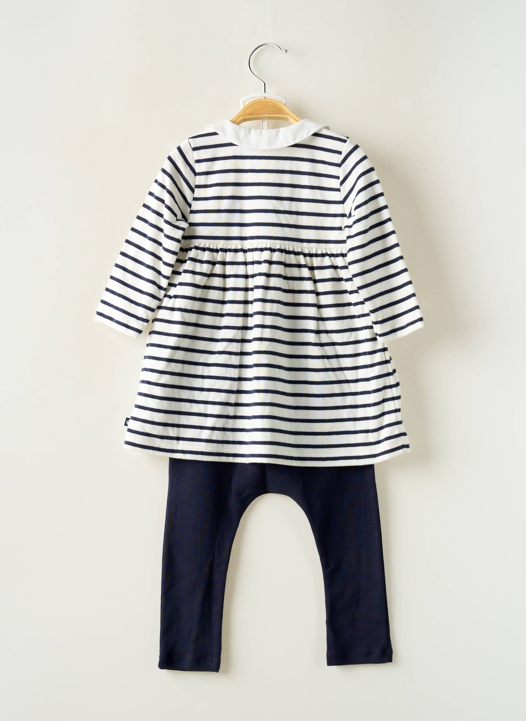 Craquez pour ce joli ensemble fille de la marque PETIT BATEAU, une vraie affaire pour habiller votre enfant avec élégance sans vous ruiner. L’ensemble comprend une tunique rayée à manches longues dans l’esprit marin classique, accompagnée d’un legging uni bleu marine pour un maximum de confort au quotidien. Avec ses détails raffinés comme le col contrastant et les petits boutons à l’encolure, c’est la tenue parfaite pour un look à la fois pratique, tendance et économique.