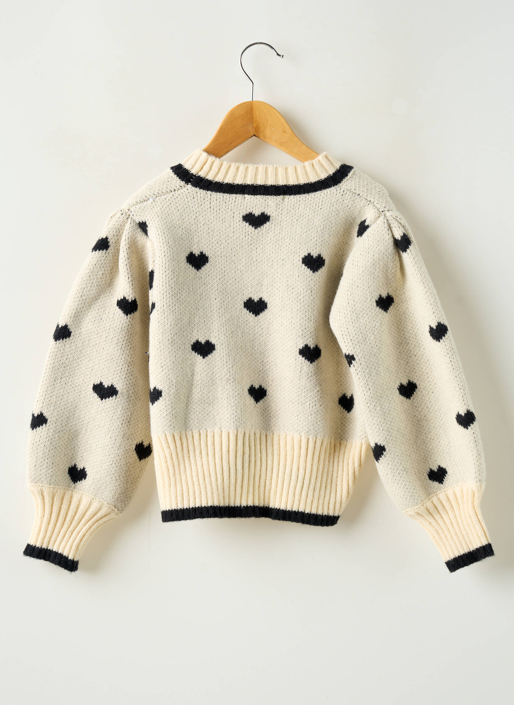 Craquez pour ce gilet à manches longues de la marque LOEVIA pour fille, une pièce tendance à petit prix qui apporte une touche d’élégance au quotidien grâce à son motif original en forme de petits cœurs noirs sur fond écru. Sa coupe légèrement oversize et ses finitions contrastées sur le col, les poignets et la base ajoutent du style tout en assurant un grand confort. Profitez de ce bon plan mode qui allie look craquant et économies, idéal pour renouveler la garde-robe de votre enfant sans vous ruiner.