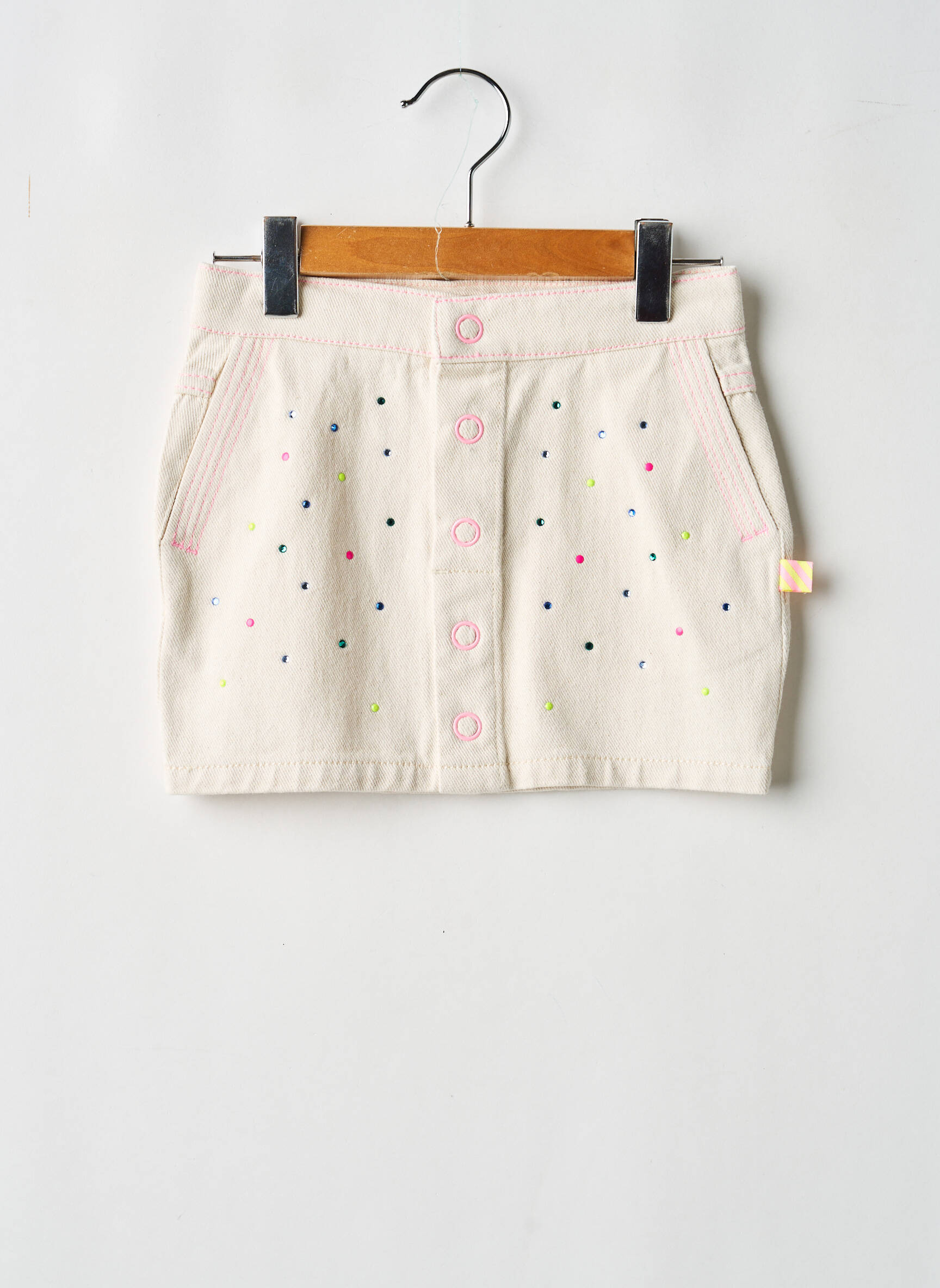 Faites plaisir à votre fille avec cette jupe courte de la marque Billieblush, un vrai bon plan pour ajouter une touche tendance à petit prix à sa garde-robe. Ce modèle lumineux séduit par sa teinte claire délicatement rehaussée de petits pois colorés et ses boutons roses décoratifs sur le devant, tout en restant facile à assortir avec ses tenues préférées. Un choix malin pour les parents qui veulent allier style et économies?!