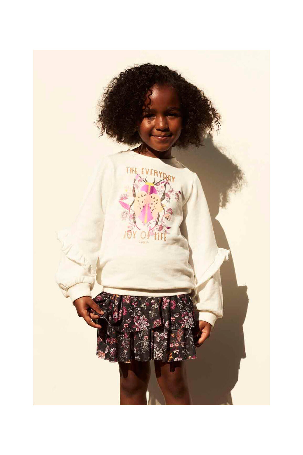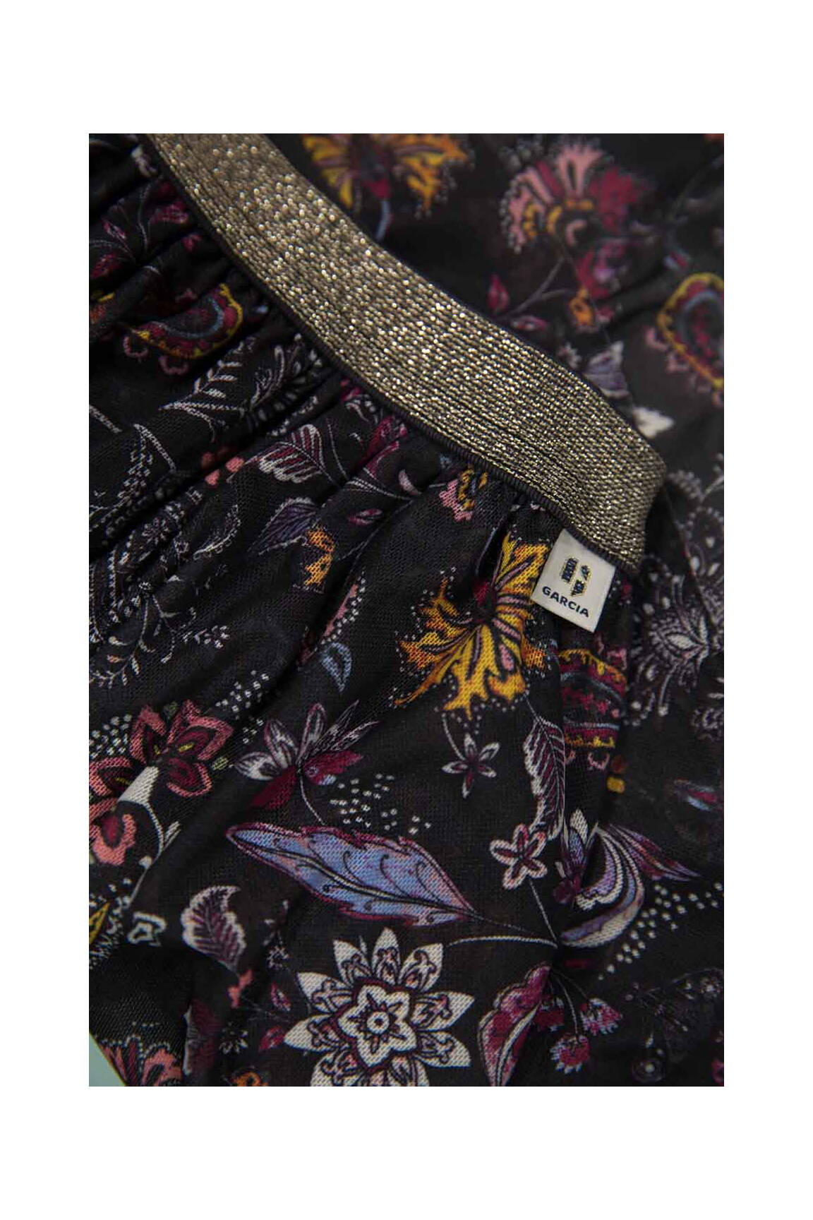 Imaginez une jupe courte qui danse avec chaque pas, comme une petite fête printanière pleine de charme. Cette jupe de la marque GARCIA pour fille séduit par son tissu noir orné d’un délicat motif floral aux touches roses, blanches et gris clair, renforçant son côté ludique et féminin, tandis que ses jolis volants apportent un mouvement fluide et joyeux, idéale pour une touche d’élégance spontanée au quotidien.