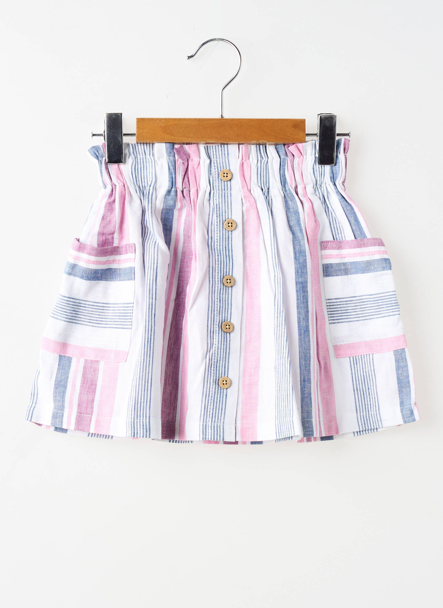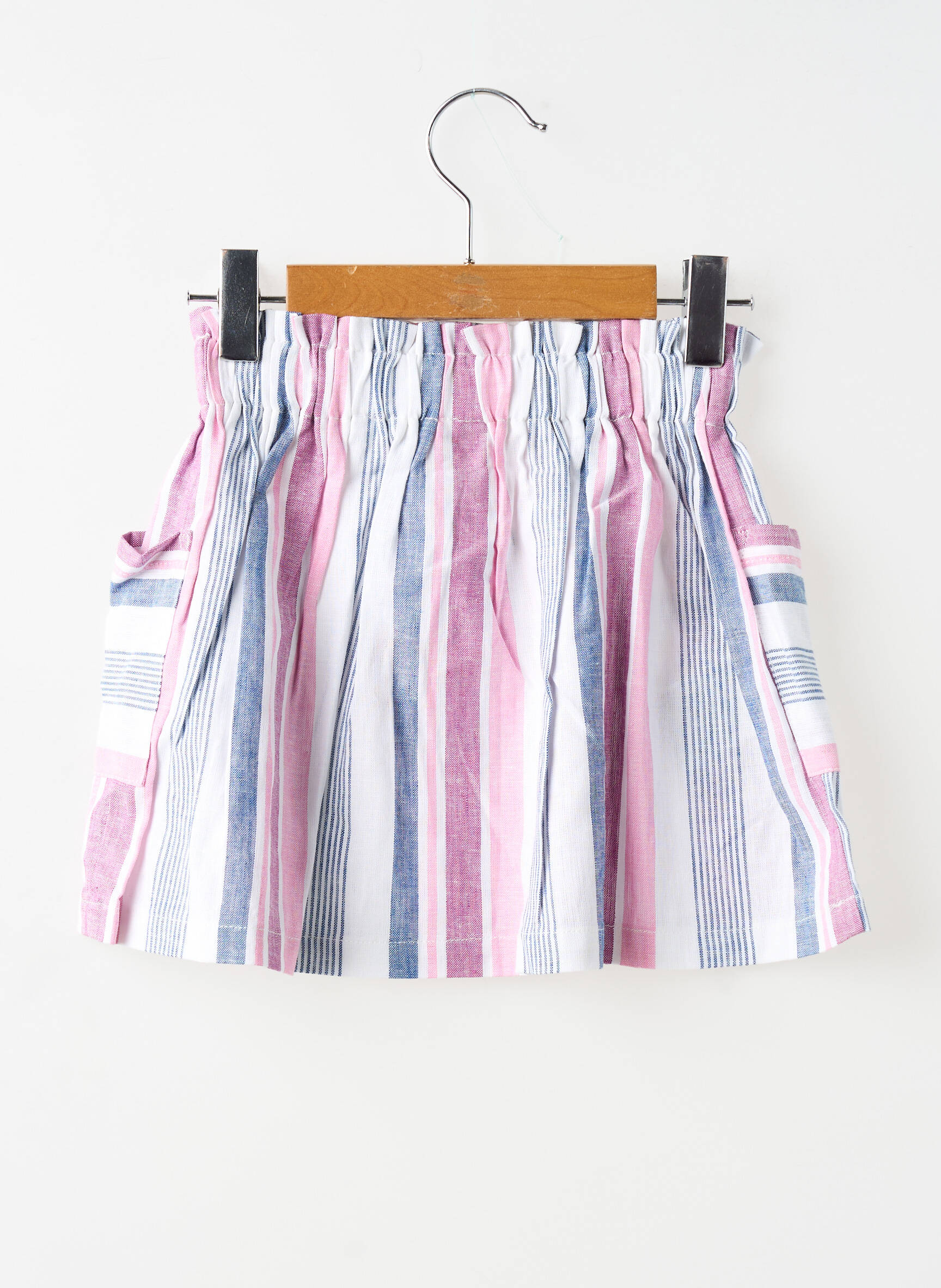 Craquez pour cette jupe courte Mayoral pour fille, le bon plan parfait pour renouveler la garde-robe à petit prix sans faire de compromis sur le style. Avec son design à rayures verticales et horizontales en rose, bleu et blanc, ses poches plaquées sur le devant et sa jolie patte de boutonnage, cette jupe apporte une touche estivale et tendance tout en restant très facile à porter au quotidien. Une pièce idéale pour allier économies et look chic, disponible en quantité limitée !