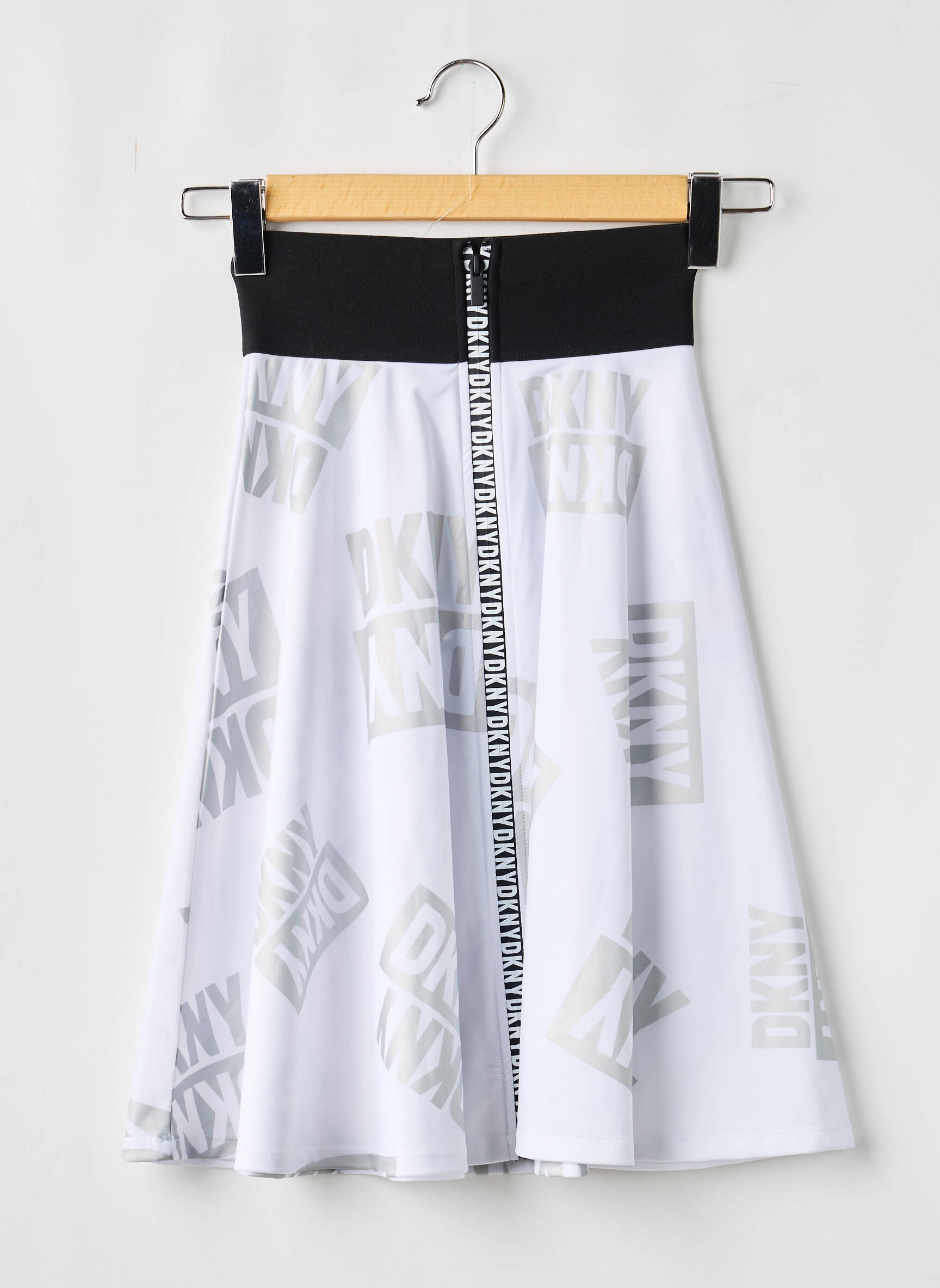 Profitez d’un vrai bon plan avec cette jupe mi-longue pour fille signée DKNY, qui offre un style urbain et tendance à petit prix. Sa coupe évasée met en valeur un imprimé all-over à l’effigie de la marque, tandis que la large ceinture noire contrastante et la fermeture zippée sur le devant apportent une touche moderne et confortable, idéale pour se démarquer sans se ruiner.