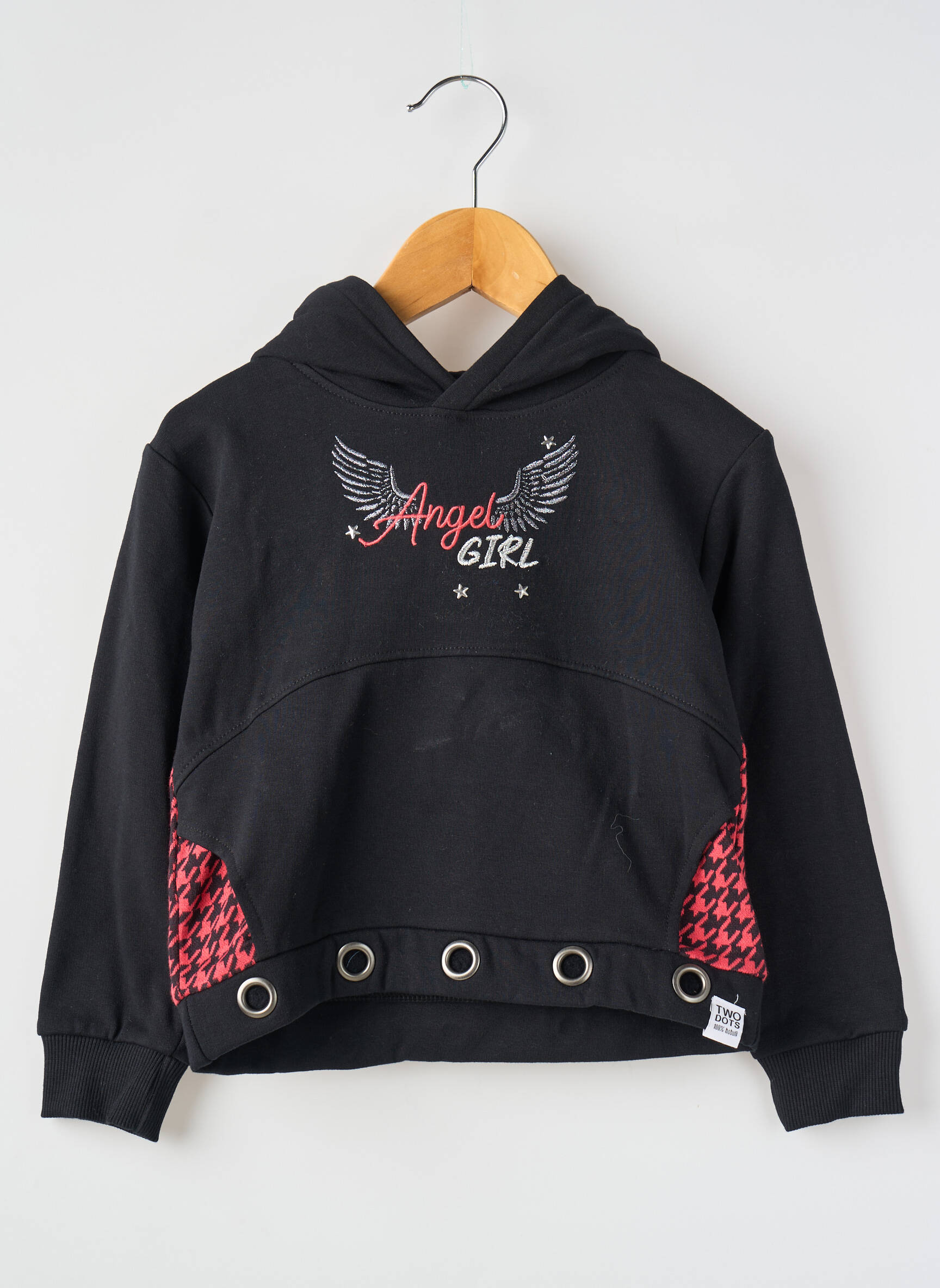 Profitez d’un vrai bon plan avec ce sweat-shirt à capuche pour fille de la marque BOBOLI, un modèle tendance à petit prix qui mixe originalité et confort. On craque pour son inscription "Angel Girl" accompagnée d’ailes stylisées brodées sur la poitrine, ses empiècements latéraux à motif pied-de-poule rouge contrastant, ainsi que ses œillets métalliques sur le bas qui apportent une touche mode. Ce sweat est idéal pour apporter un style unique et décontracté à toutes les tenues sans se ruiner.