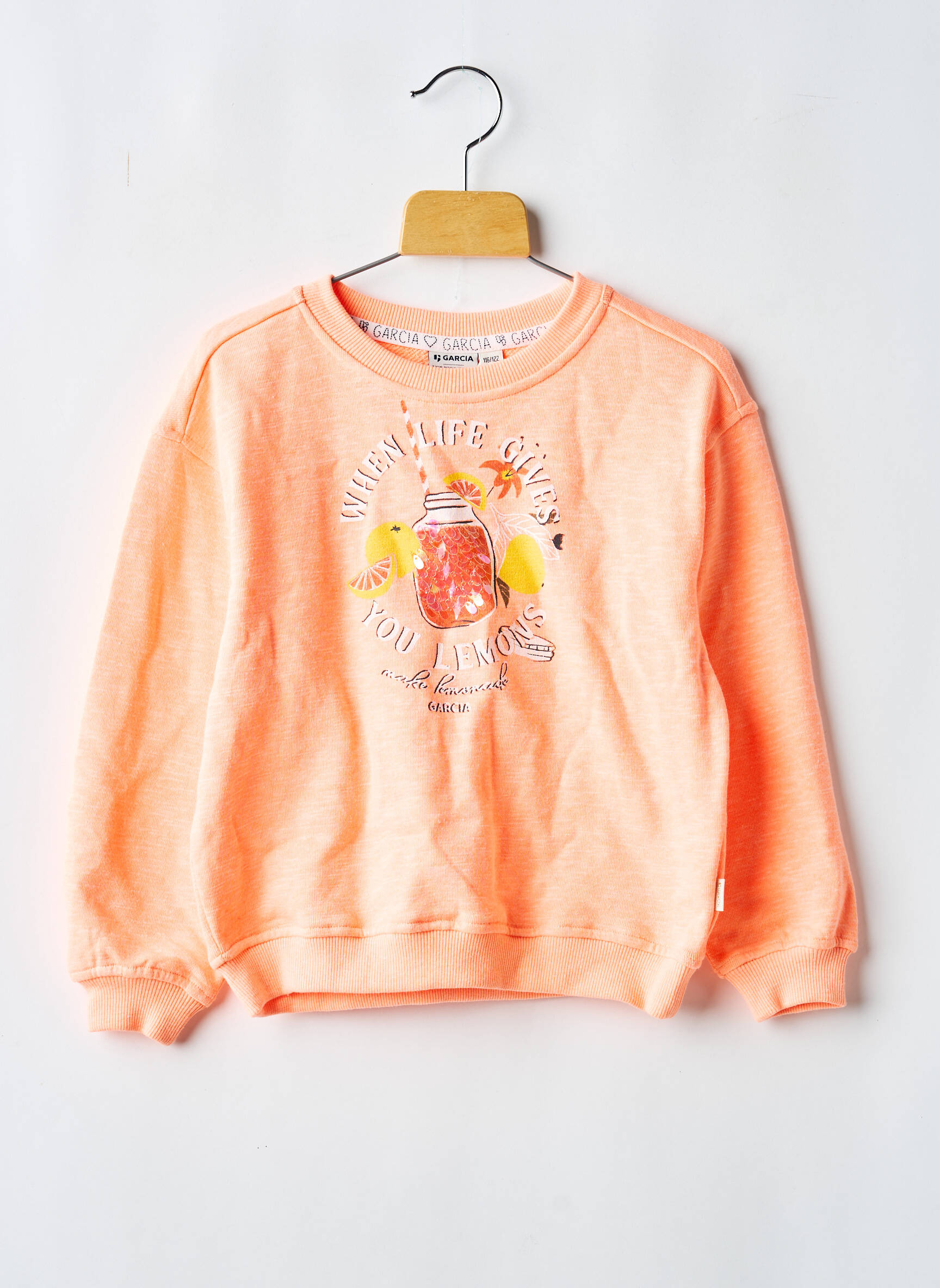 Faites plaisir à votre fille sans vous ruiner grâce à ce sweat-shirt GARCIA au coloris pêche vitaminé, parfait pour apporter une touche de fraîcheur à son dressing à petit prix. Son imprimé central mettant en scène un bocal de boisson fruitée et le message optimiste donne un esprit ludique et estival au quotidien. Profitez d’un bon plan mode avec ce pull confortable, idéal pour accompagner toutes ses aventures avec style sans dépenser plus.