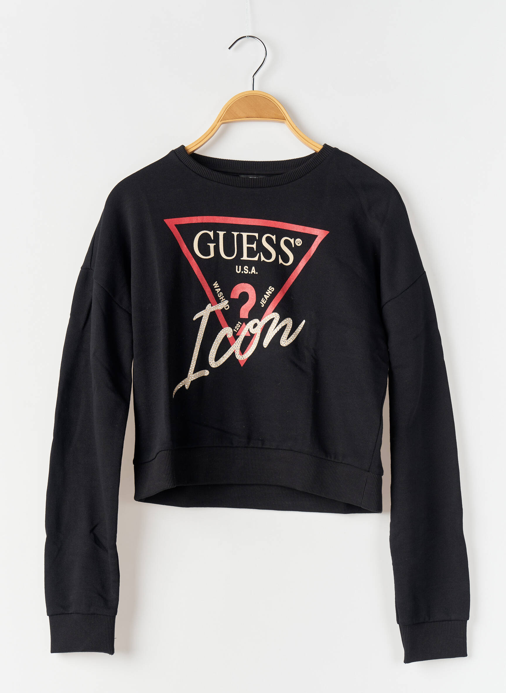 Profitez d’un bon plan avec ce sweat-shirt pour fille signé GUESS, affichant fièrement le logo iconique de la marque sur un fond noir élégant. Ce modèle tendance se distingue par sa coupe moderne et son inscription audacieuse « Icon » qui apporte une touche stylée à n'importe quelle tenue, tout en assurant confort et style à petit prix. Idéal pour se démarquer sans se ruiner, c’est la pièce parfaite pour les fashionistas en herbe qui veulent se faire plaisir sans exploser leur budget.