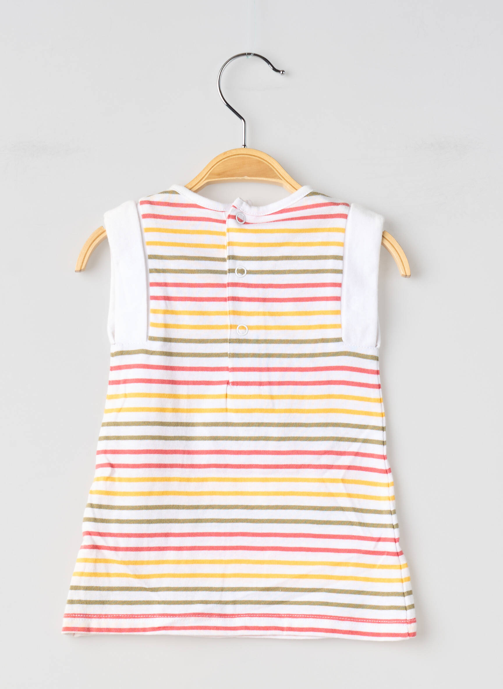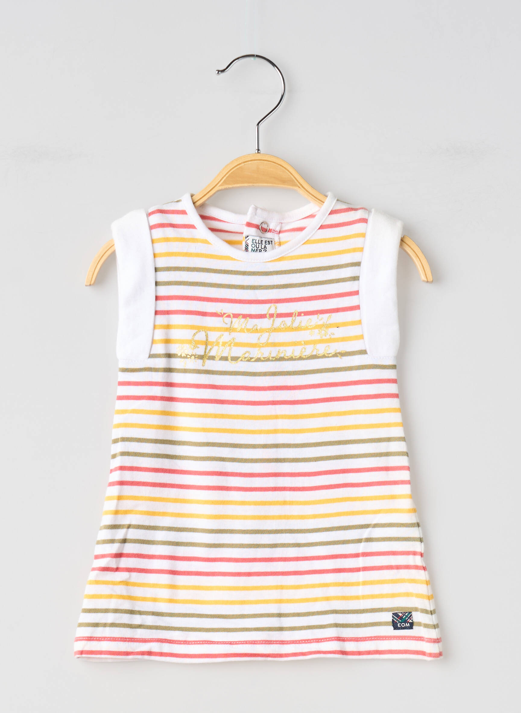 Craquez pour cette adorable robe courte de la marque ELLE EST OU LA MER, parfaite pour offrir à votre petite fille un look coloré et pétillant à prix mini. Avec ses rayures multicolores et son inscription dorée sur le devant, elle apporte gaieté et décontraction tout en étant ultra confortable pour l’été. Profitez d’un vrai bon plan sur une robe tendance, idéale pour renouveler la garde-robe sans se ruiner.