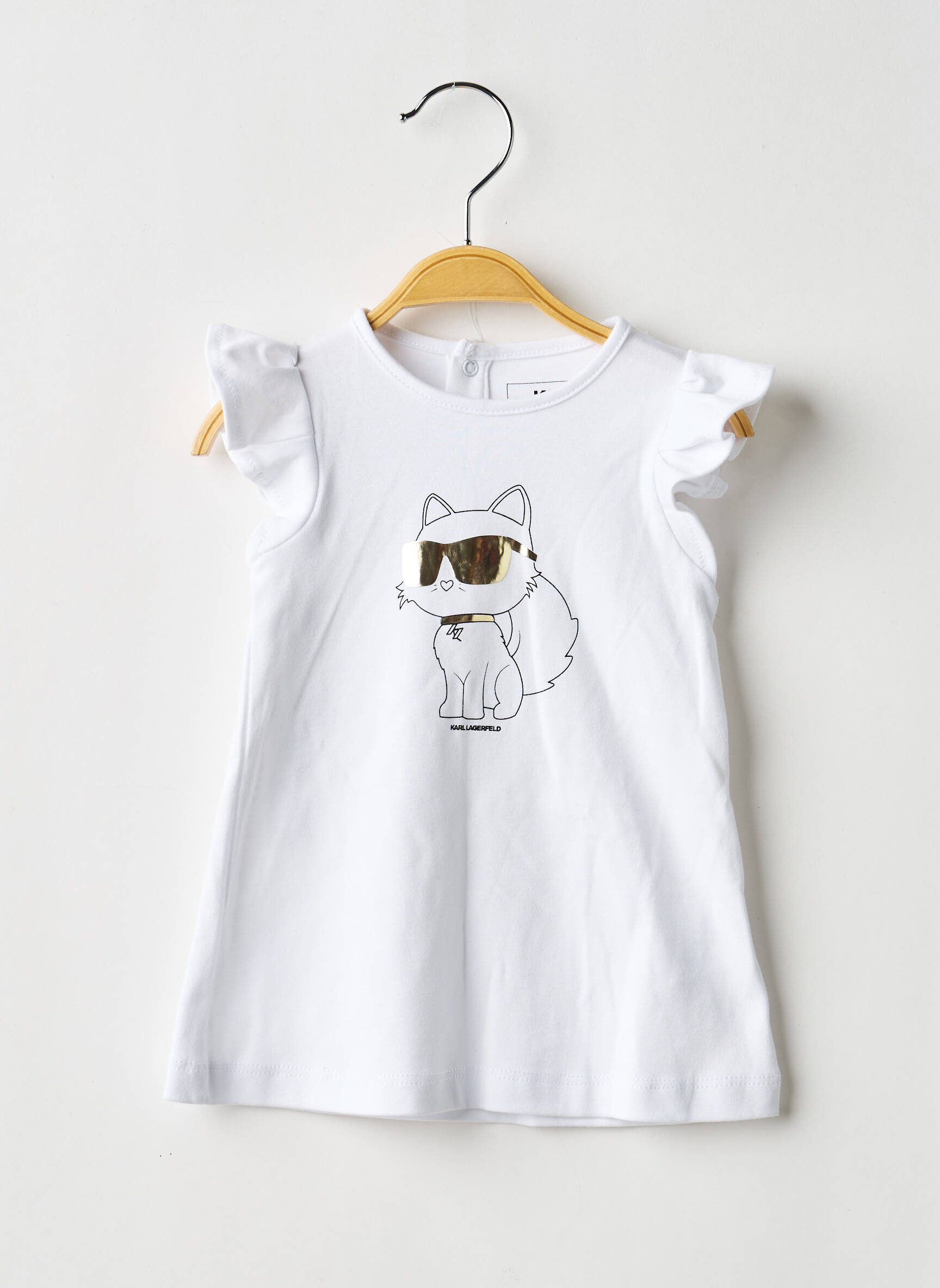 Craquez pour cette robe courte KARL LAGERFELD pour fille, une véritable opportunité à ne pas manquer pour offrir une touche de style tendance sans vous ruiner. Le modèle séduit par sa coupe fluide et confortable, tandis que son imprimé chat avec lunettes dorées ajoute une note ludique et chic parfaite pour toutes les occasions. Les petits volants aux épaules apportent une touche féminine et originale, idéale pour un look à la fois moderne et accessible. Ne passez pas à côté de ce bon plan mode qui allie style de créateur et prix tout doux !