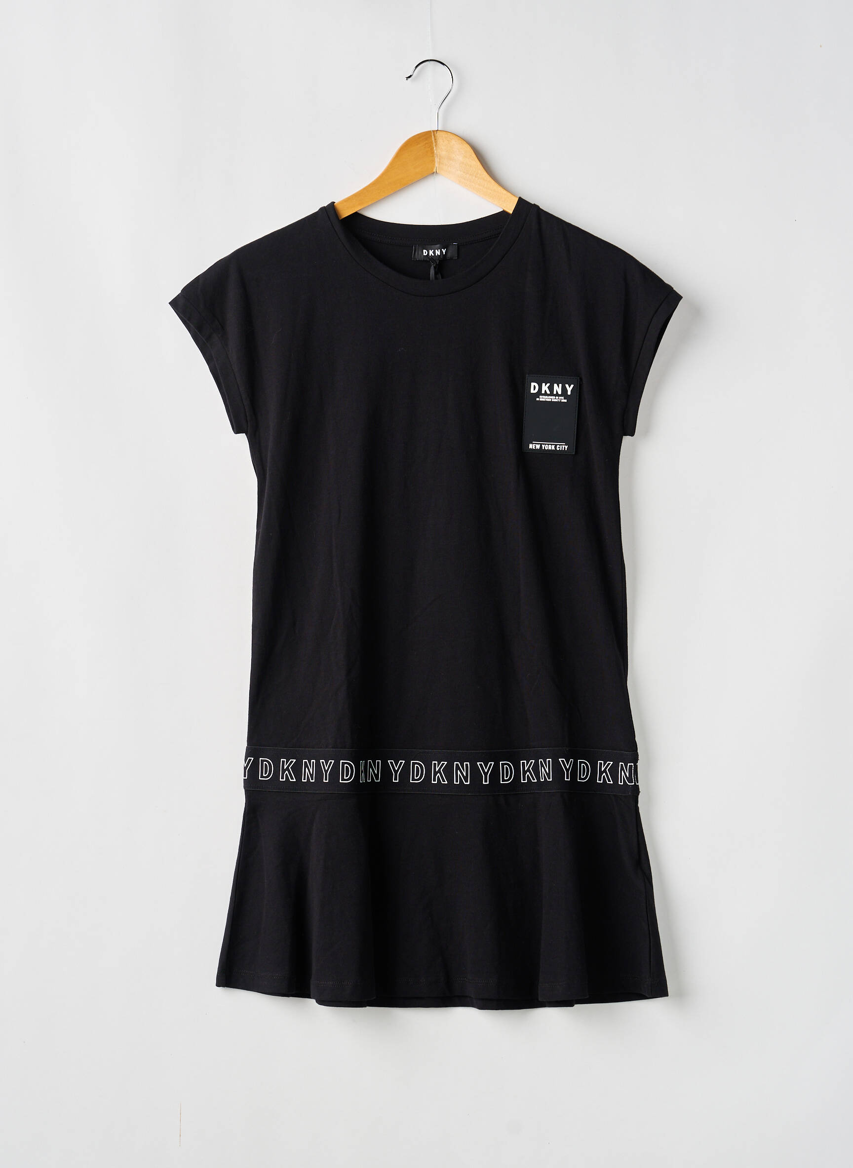 Voici une robe mi-longue DKNY pour fille qui séduit par son allure moderne et son confort au quotidien, une vraie bonne affaire pour offrir une pièce tendance à petit prix. Son coloris noir intemporel, relevé par un détail logo discret sur la poitrine et une bande siglée autour de la taille, apporte une touche urbaine facile à porter en toutes circonstances, parfaite pour faire sensation sans se ruiner.