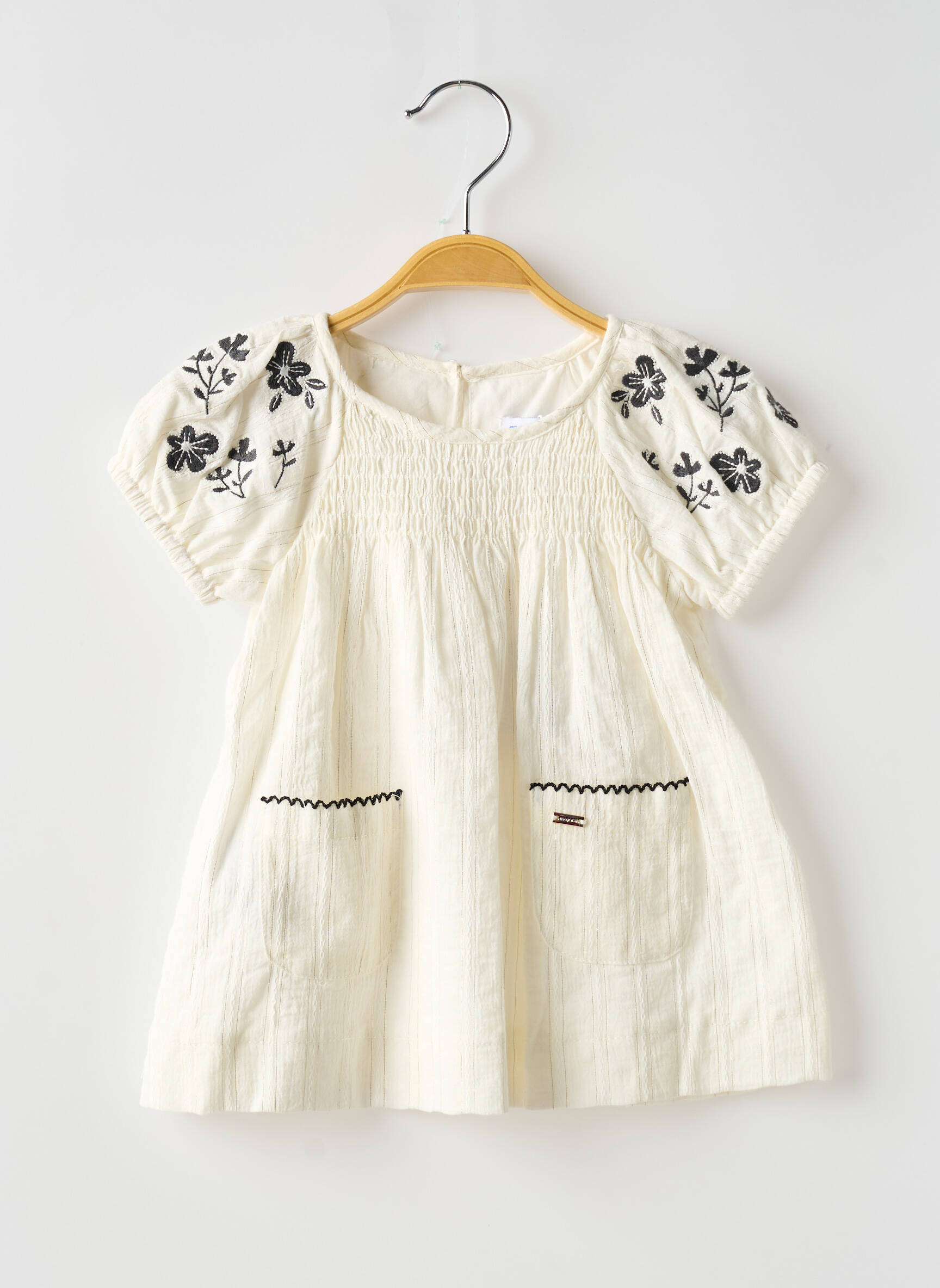 Profitez d’une véritable bonne affaire avec cette robe mi-longue pour fille signée MAYORAL, idéale pour donner du style sans se ruiner. Son tissu léger et fluide offre un tombé naturel, tandis que les manches courtes à broderies florales ajoutent une touche délicate et tendance à l’ensemble. Le haut smocké assure confort et maintien, et les deux poches ornées d’un petit galon contrasté apportent une note de fantaisie très appréciée. Un choix parfait pour renouveler la garde-robe de votre enfant tout en maîtrisant votre budget.