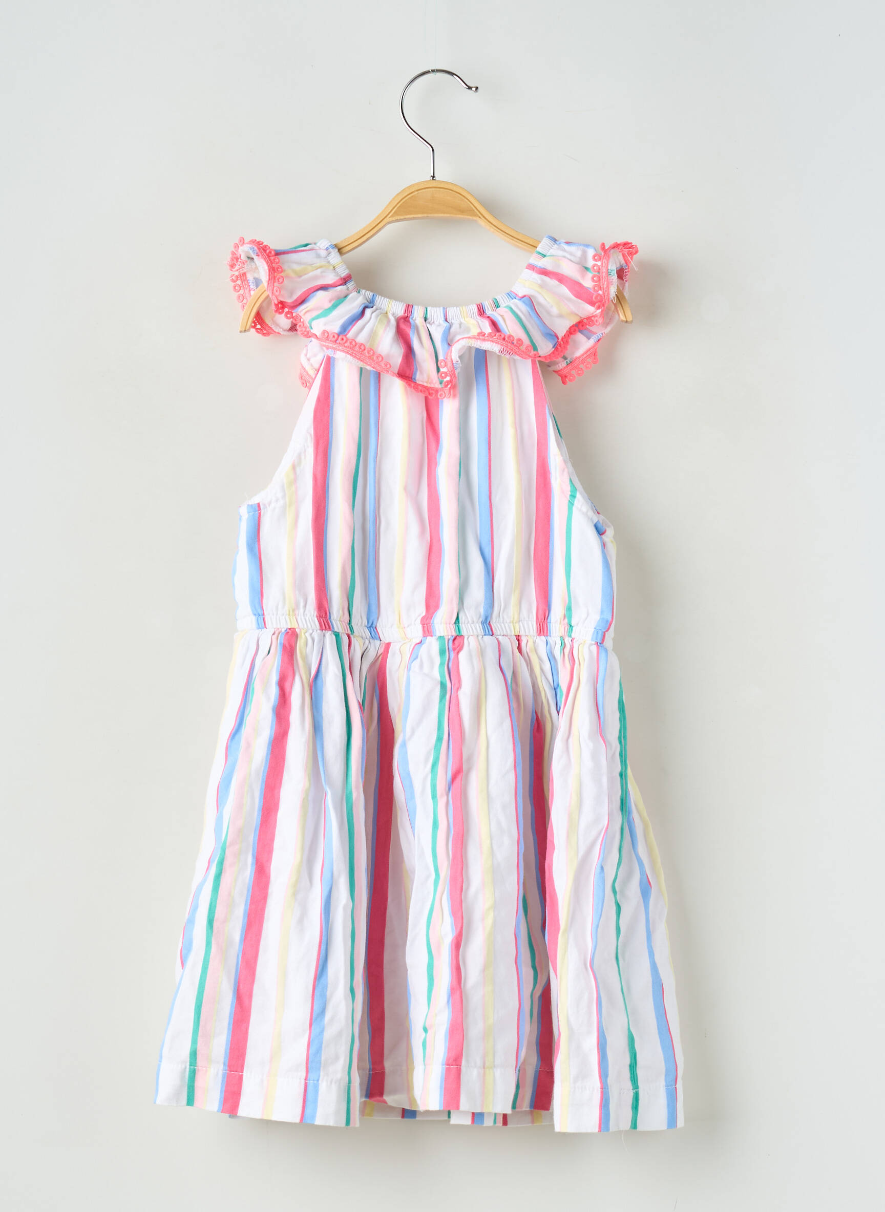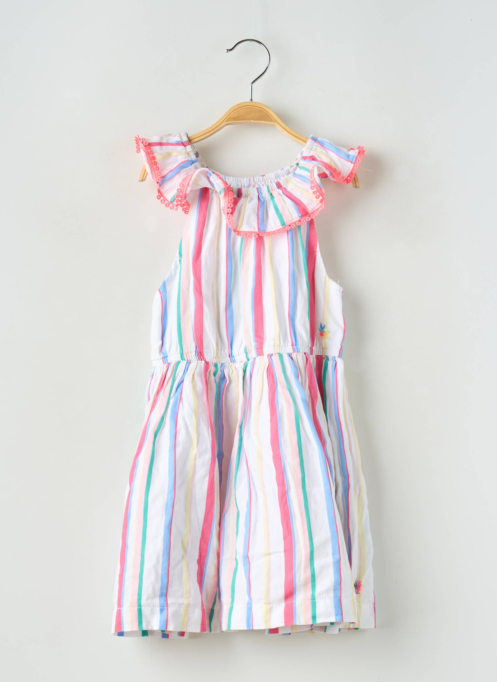 Pour faire plaisir sans se ruiner, cette robe mi-longue Sergent Major pour fille est l’affaire idéale à saisir. Avec ses rayures colorées et son col volanté délicatement rehaussé de petits détails roses, elle offre un look frais et joyeux qui ravira toutes les petites filles, parfaite pour les beaux jours et à prix tout doux.