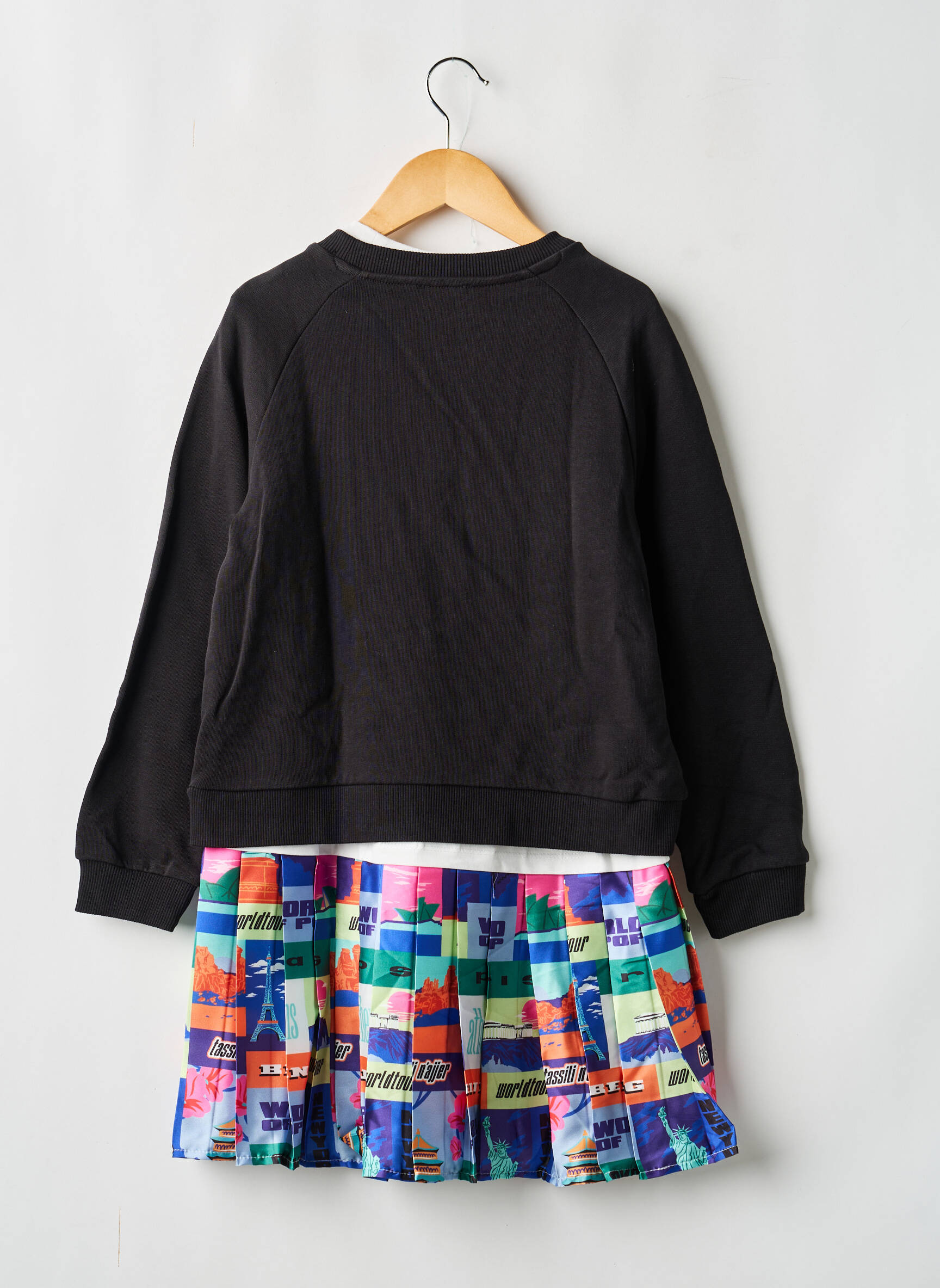 Profitez d’un vrai bon plan avec cette robe mi-longue pour fille signée W.O.P (WORLD OF POP), idéale pour un style tendance à prix mini. Ce modèle allie le confort d’un haut noir façon sweat, rehaussé d’un logo discret sur la poitrine, avec une jupe colorée à motifs pop et graphiques qui apporte une touche d’originalité et de dynamisme. C’est la robe parfaite pour offrir un look casual et moderne sans se ruiner, à saisir pour faire plaisir ou renouveler la garde-robe à petit prix.