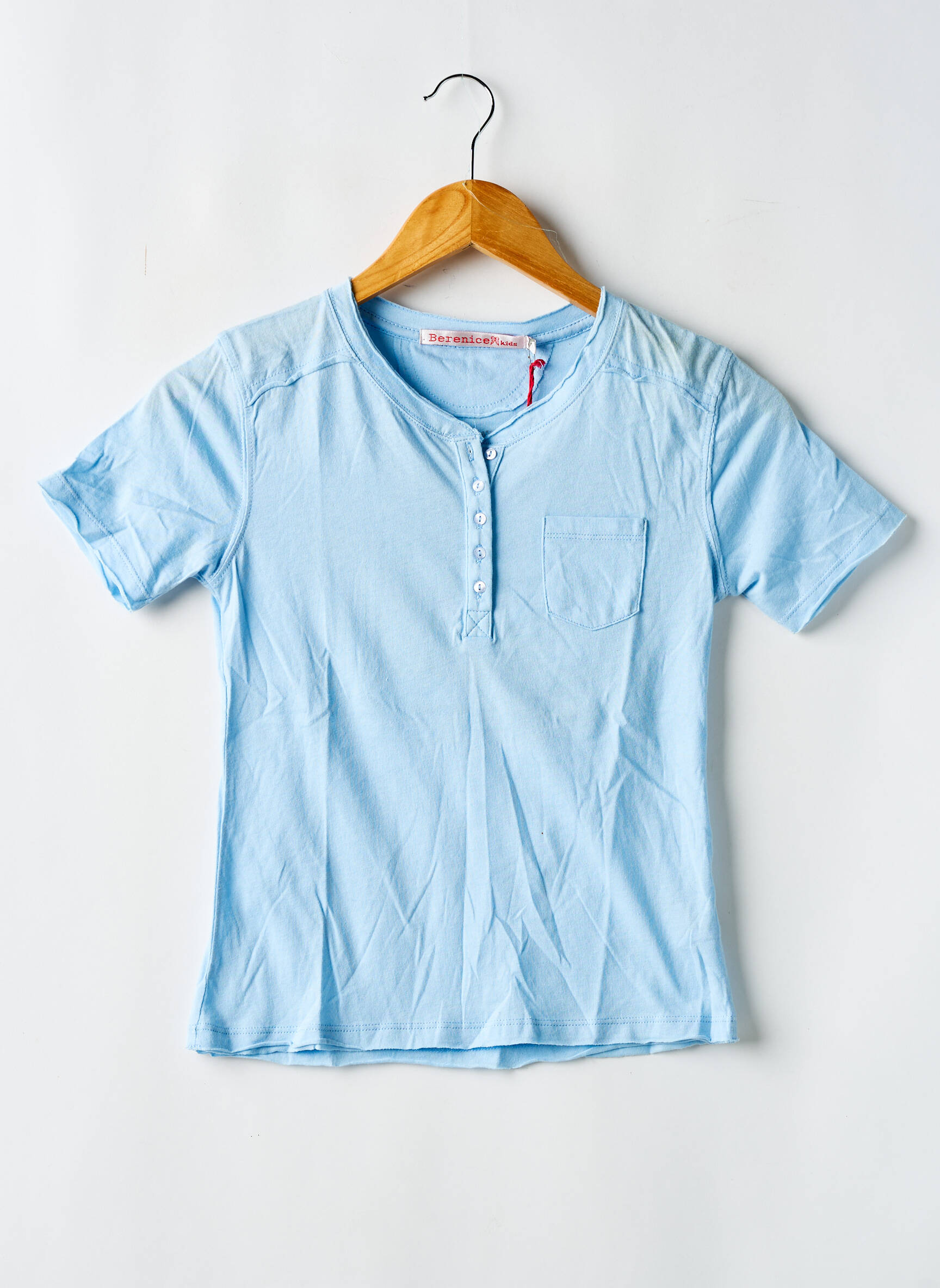 Profitez d’un vrai bon plan mode avec ce T-shirt BERENICE pour fille, parfait pour les petits budgets sans renoncer au style. Son coloris bleu clair apporte une touche de fraîcheur à toutes les tenues, tandis que la coupe simple et le col boutonné ajoutent une note moderne et décontractée. La petite poche poitrine accentue le côté pratique et tendance de ce basique facile à porter, idéal pour renouveler la garde-robe à prix mini.