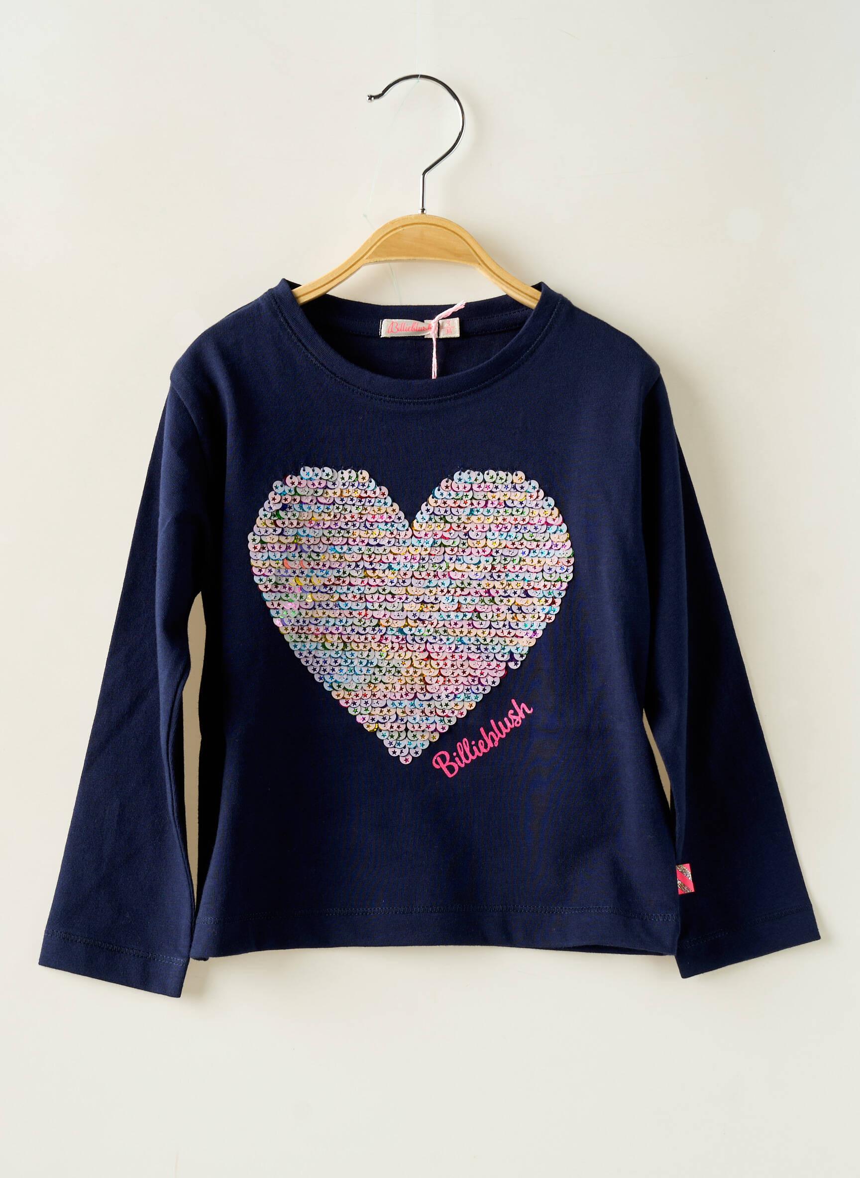 Craquez pour ce T-shirt BILLIEBLUSH pour fille, une vraie pépite à prix mini, avec son grand cœur scintillant multicolore brodé sur fond bleu marine qui apporte une touche de fantaisie à toutes les tenues du quotidien ; une belle opportunité de faire plaisir sans se ruiner.