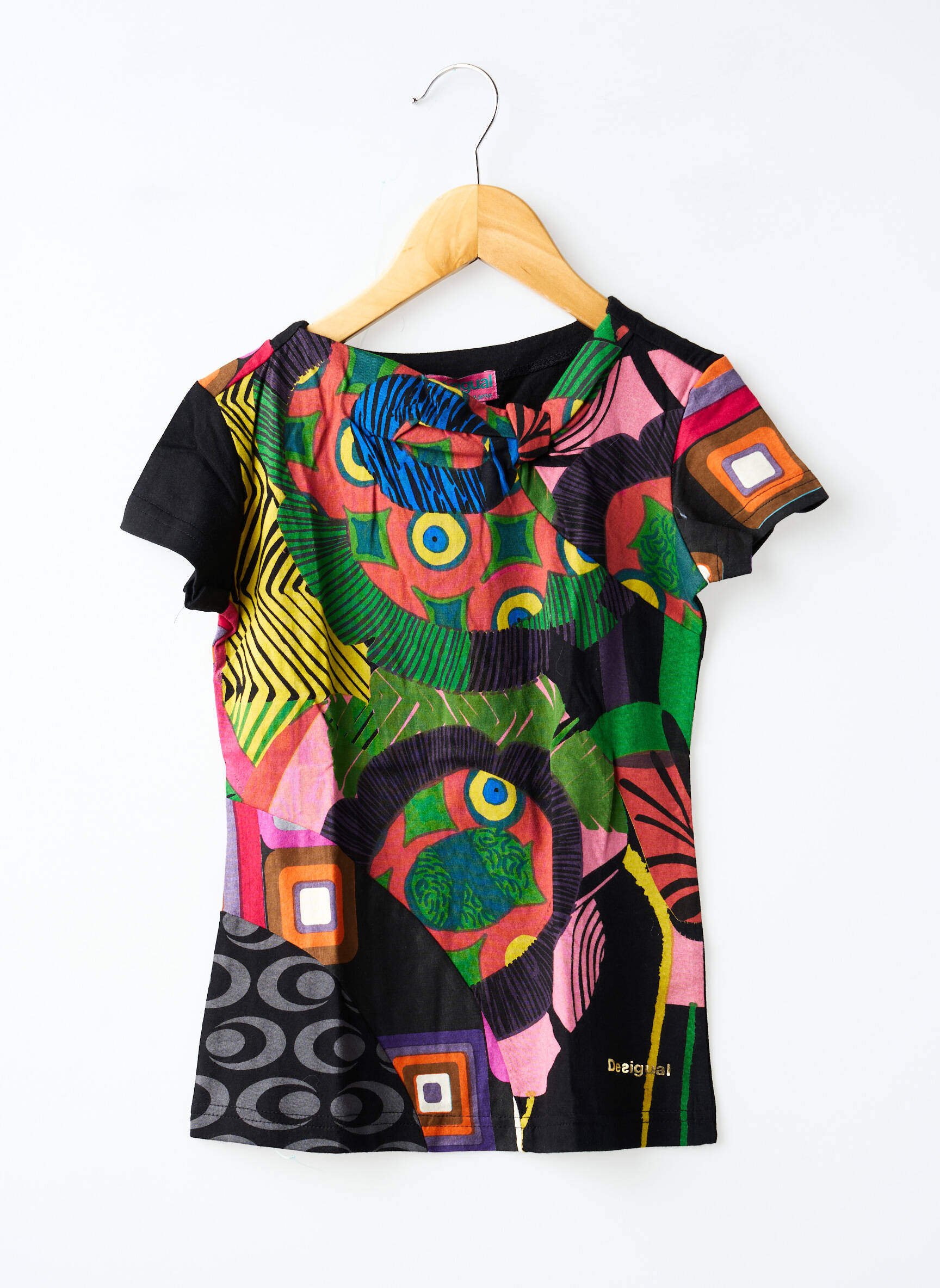 Voici une occasion à ne pas manquer pour offrir à votre fille un T-shirt DESIGUAL unique à prix tout doux. Avec ses imprimés colorés et artistiques qui mêlent motifs géométriques et touches abstraites dans des tons vifs, ce T-shirt apporte une note d’originalité irrésistible à toutes les tenues. Sa coupe confortable et son style plein de caractère en font l’allié parfait pour affirmer sa personnalité sans compromis sur l’élégance, tout en profitant d’un excellent rapport qualité-prix.