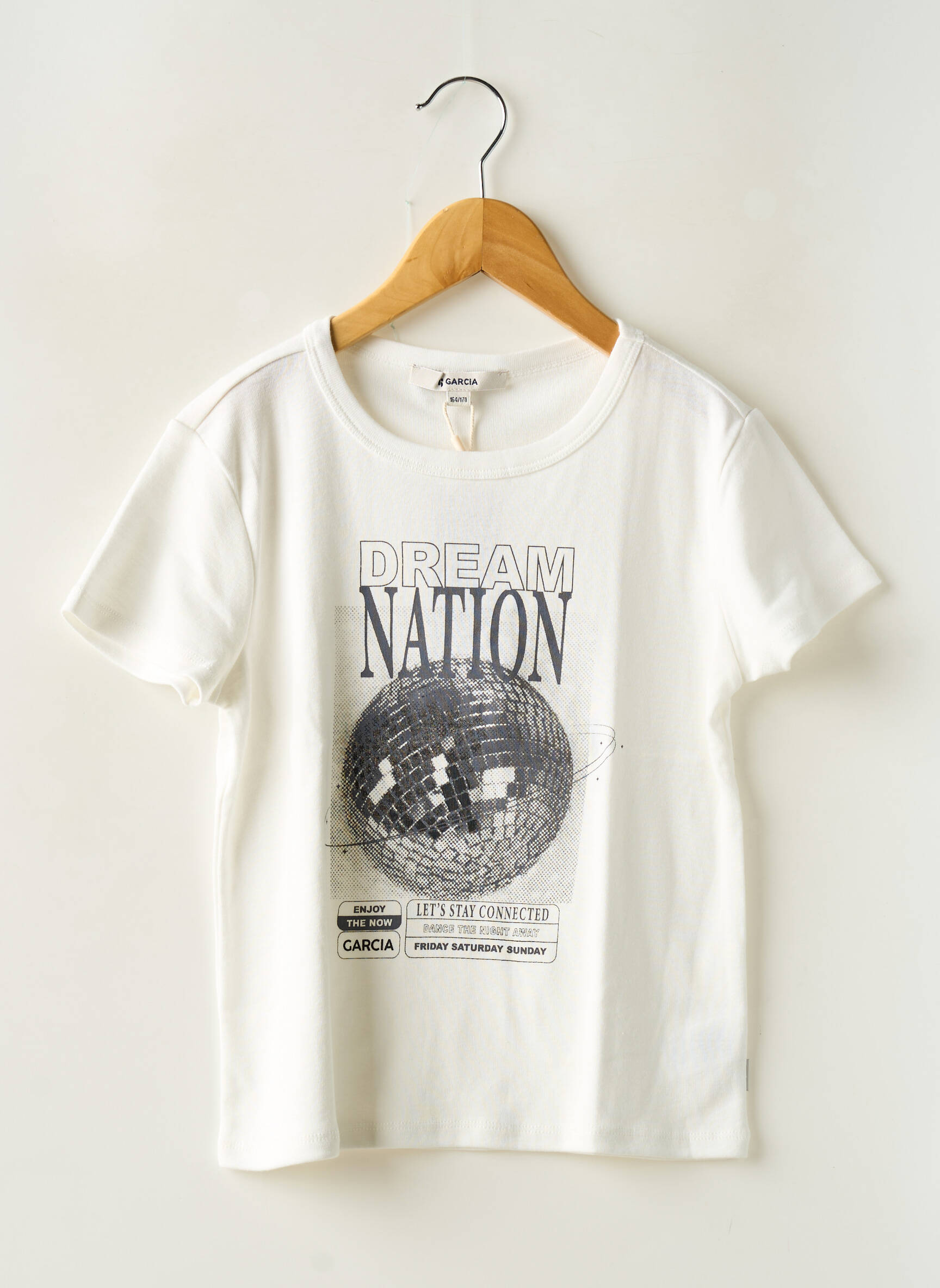 Craquez pour ce T-shirt fille signé GARCIA, une véritable affaire pour renouveler la garde-robe à petit prix grâce à son look tendance et actuel. Son design blanc lumineux met en valeur un imprimé original façon boule à facettes accompagné de l’inscription "Dream Nation", parfait pour apporter une touche de fun et d’originalité au quotidien. Profitez d’un modèle stylé à prix doux, idéal pour offrir à votre enfant un style unique sans se ruiner.