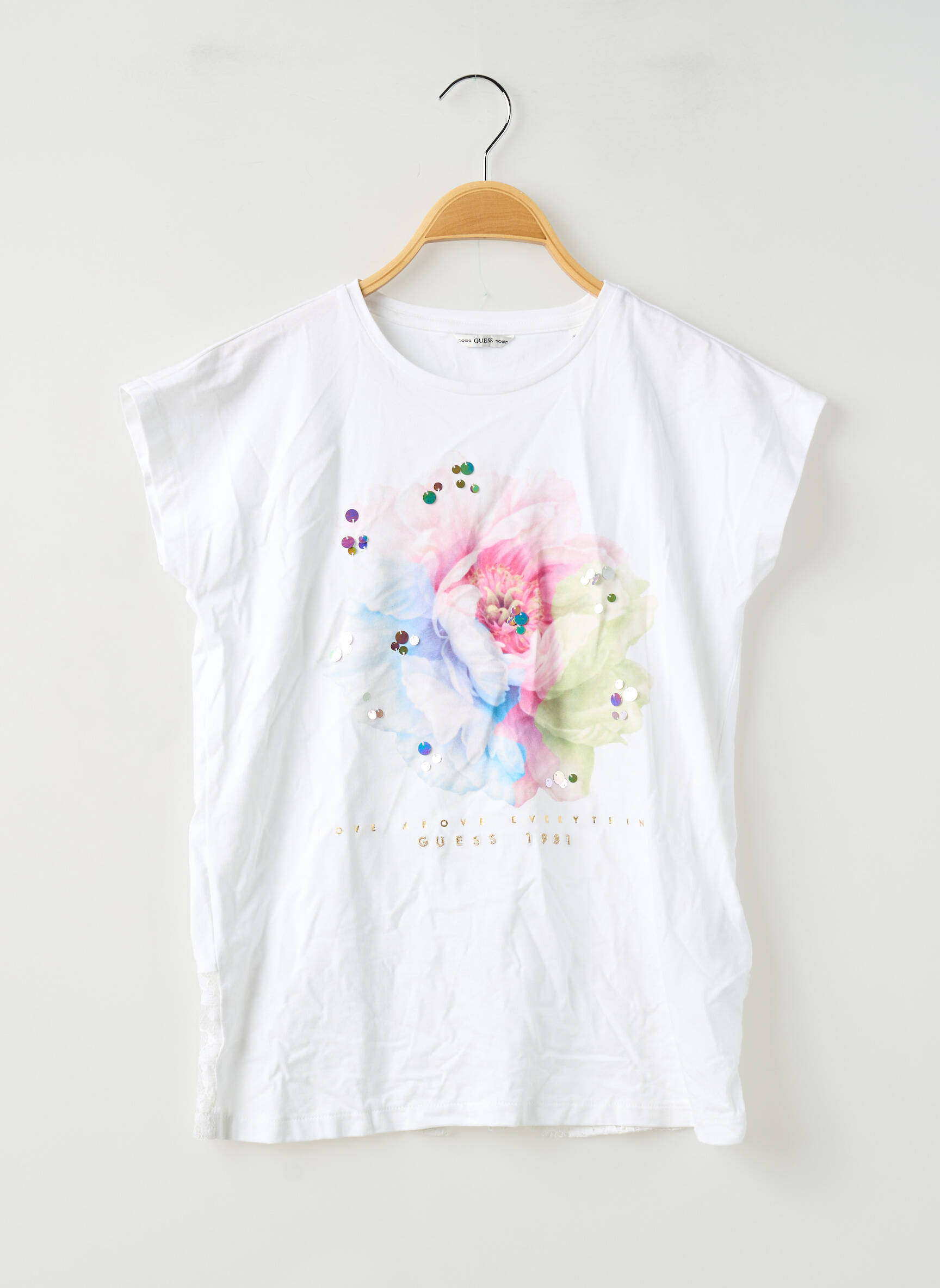 Profitez d’un vrai bon plan avec ce T-shirt GUESS pour fille, une pièce tendance à petit prix qui allie style et fraîcheur. Son imprimé multicolore au motif floral apporte une touche de douceur et de fantaisie sur un fond blanc lumineux, parfait pour égayer toutes les tenues. Sa coupe décontractée promet un confort optimal, idéal pour toutes les activités du quotidien. Ce T-shirt GUESS est l’occasion de faire plaisir sans se ruiner, tout en adoptant un look moderne signé par une marque emblématique.