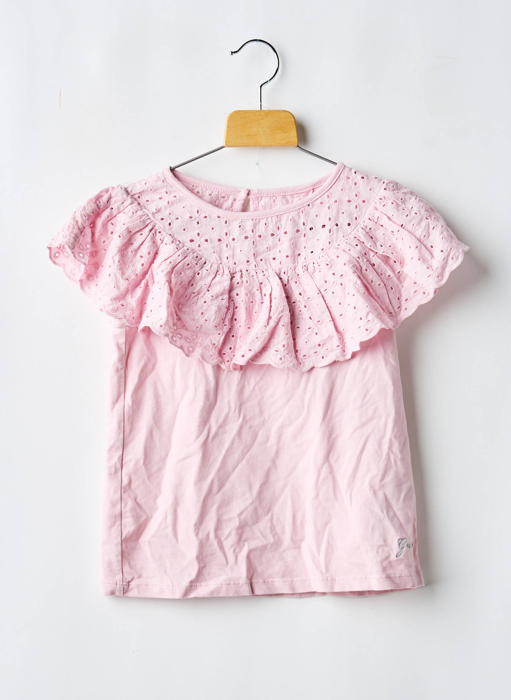 Profitez d’une belle opportunité pour faire plaisir sans vous ruiner avec ce T-shirt GUESS pour fille, affichant un délicat coloris rose et sublimé par un large volant brodé au niveau du col pour une touche romantique et tendance. Ce modèle à prix mini assure un look girly tout en douceur, parfait pour accompagner les tenues du quotidien comme les moments spéciaux, tout en bénéficiant d’une vraie économie sur une pièce de marque.