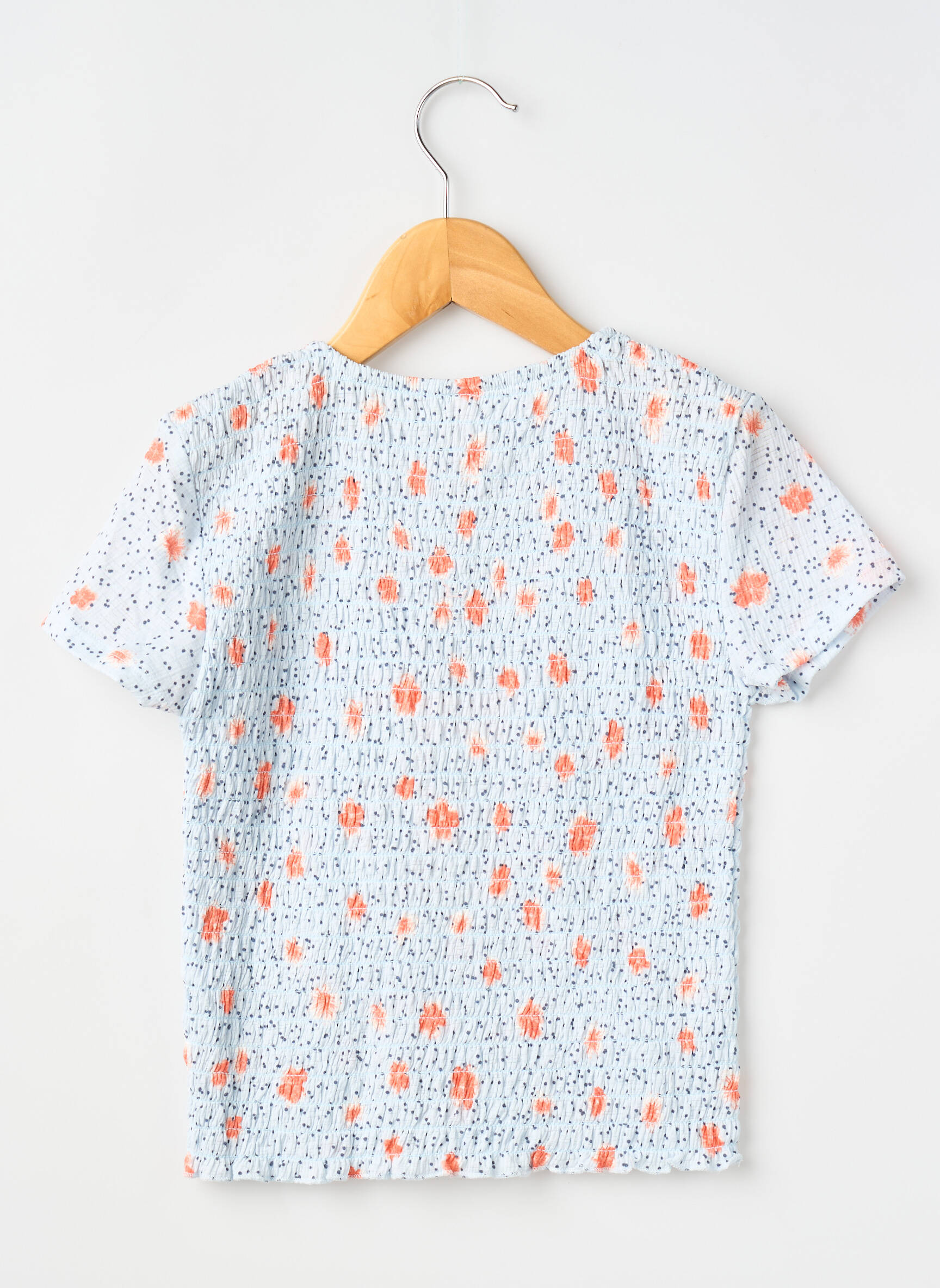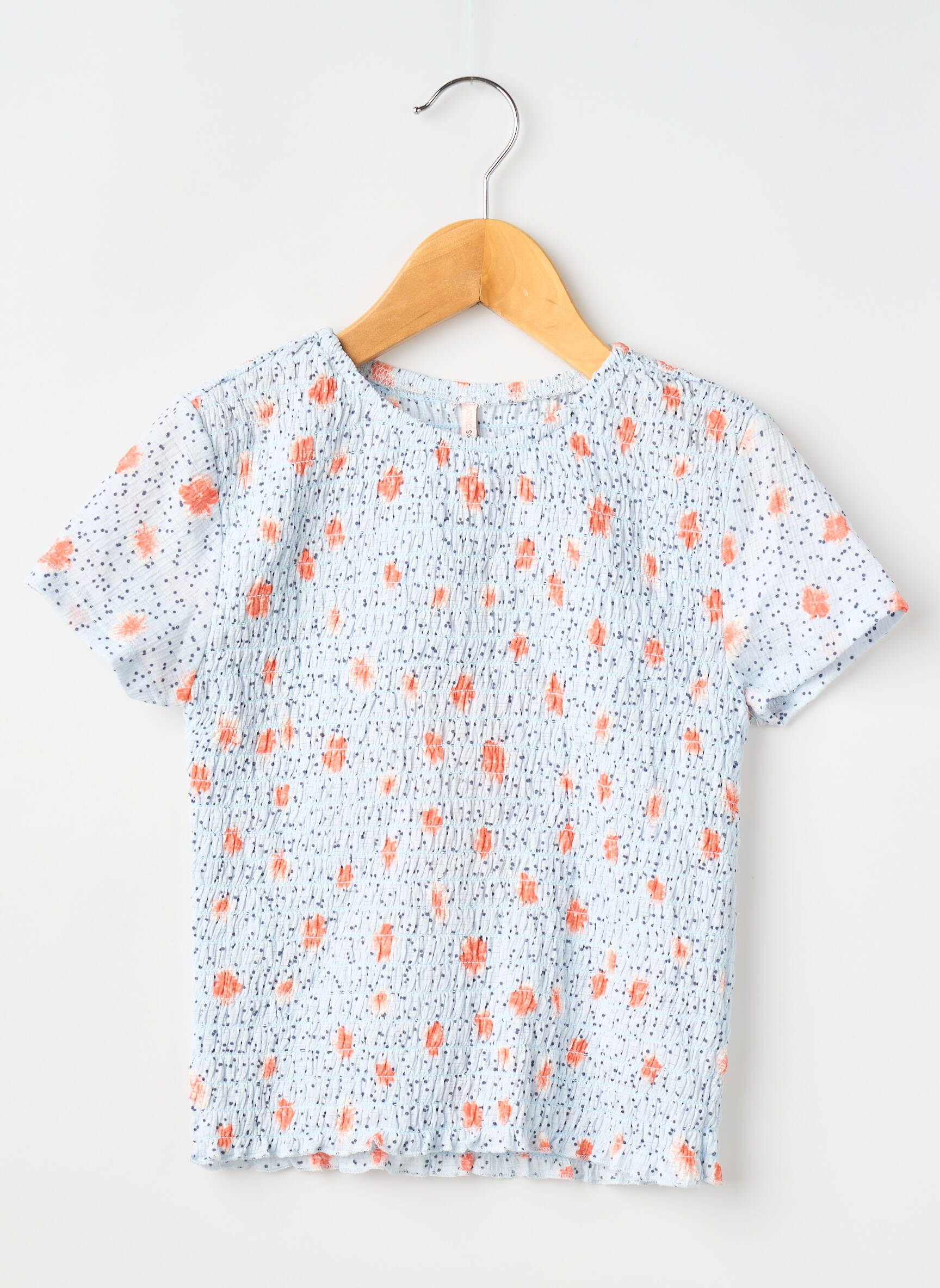 Craquez pour ce T-shirt ONLY pour fille, une véritable aubaine pour apporter une touche fraîche et joyeuse à la garde-robe sans se ruiner. Son imprimé délicat mêle de petites touches orangées à un fond clair parsemé de motifs bleus, parfait pour égayer les tenues quotidiennes tout en profitant d’un prix mini. Détail mode adoré, sa coupe droite et son col arrondi en font un basique facile à porter en toute occasion, un vrai bon plan à ne pas laisser passer.