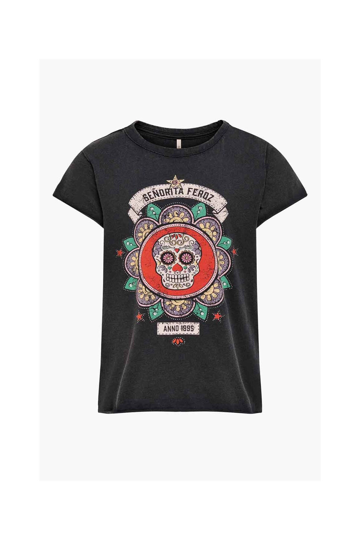 Comme un coup de pinceau audacieux sur une toile noire, ce T-shirt de la marque ONLY pour fille associe une coupe classique à un imprimé graphique éclatant au centre, mêlant des couleurs vives et un message stylé qui donne du caractère à chaque tenue.