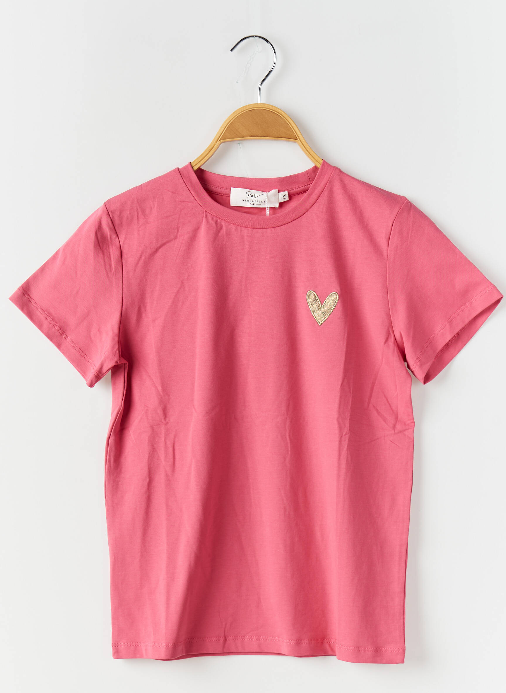 Craquez pour ce T-shirt fille de la marque PM MERE & FILLE, un basique tendance à prix mini, idéal pour ajouter une touche de douceur et de couleur au quotidien de votre enfant. Sa coupe classique et son joli cœur brodé sur la poitrine en font un indispensable facile à assortir, parfait pour profiter d’un look stylé sans se ruiner.