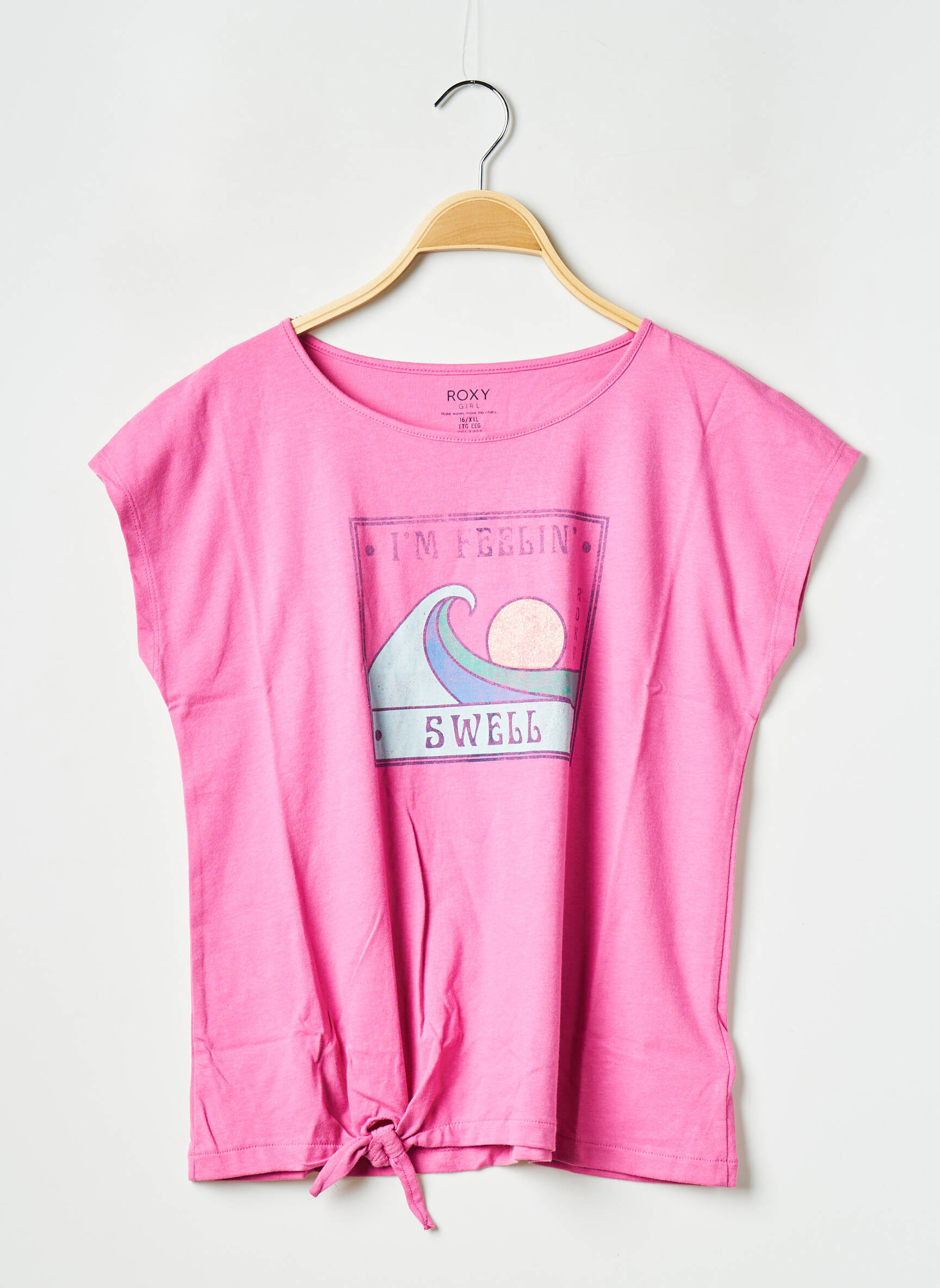 Craquez pour ce T-shirt ROXY pour fille, un bon plan à ne pas manquer pour un look tendance sans dépasser votre budget. Avec sa jolie couleur rose vive et son imprimé fun « I’m Feeling Swell » orné d’une vague stylisée, il apportera une touche de fraîcheur et de bonne humeur à toutes les tenues. Son petit nœud à la base ajoute une note originale tout en mettant en valeur le style décontracté de la marque. Profitez de ce T-shirt à prix mini pour offrir un vêtement cool et confortable, parfait pour toutes les envies de plage ou de vacances, sans compromis sur la qualité.