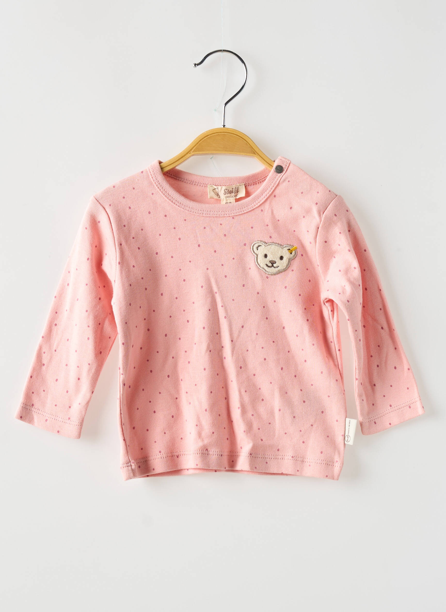 Craquez pour ce T-shirt STEIFF pour fille, une vraie opportunité à petit prix pour habiller les enfants avec douceur sans sacrifier la qualité ! On aime sa teinte rose tendre légèrement ponctuée de petits motifs discrets, ainsi que l’iconique tête d’ours brodée sur la poitrine qui apporte une touche à la fois ludique et élégante, tout ça dans une coupe confortable idéale pour tous les jours.