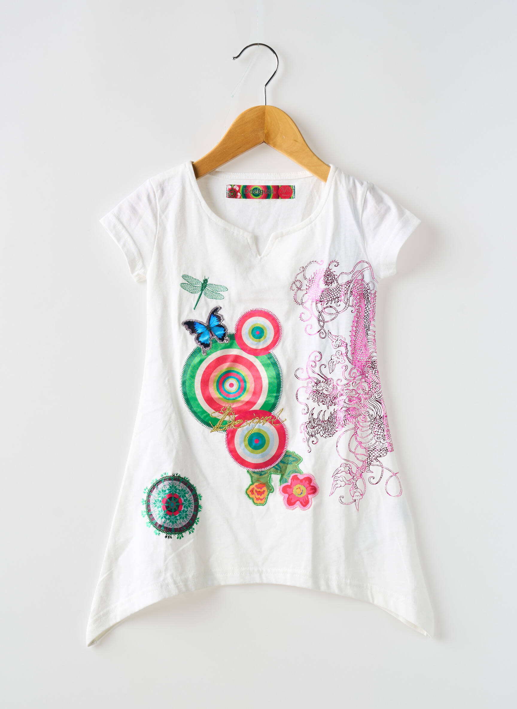 Craquez pour cette tunique manches courtes Desigual pour fille et offrez-lui un look original à prix mini. Son imprimé coloré et ludique, avec ses motifs fleuris, cercles graphiques et touches de papillon, apporte une vraie touche de fantaisie tout en restant facile à porter. Ce modèle allie style unique et confort pour permettre aux petites filles de bouger en toute liberté, le tout à un prix vraiment avantageux pour se faire plaisir sans se ruiner.