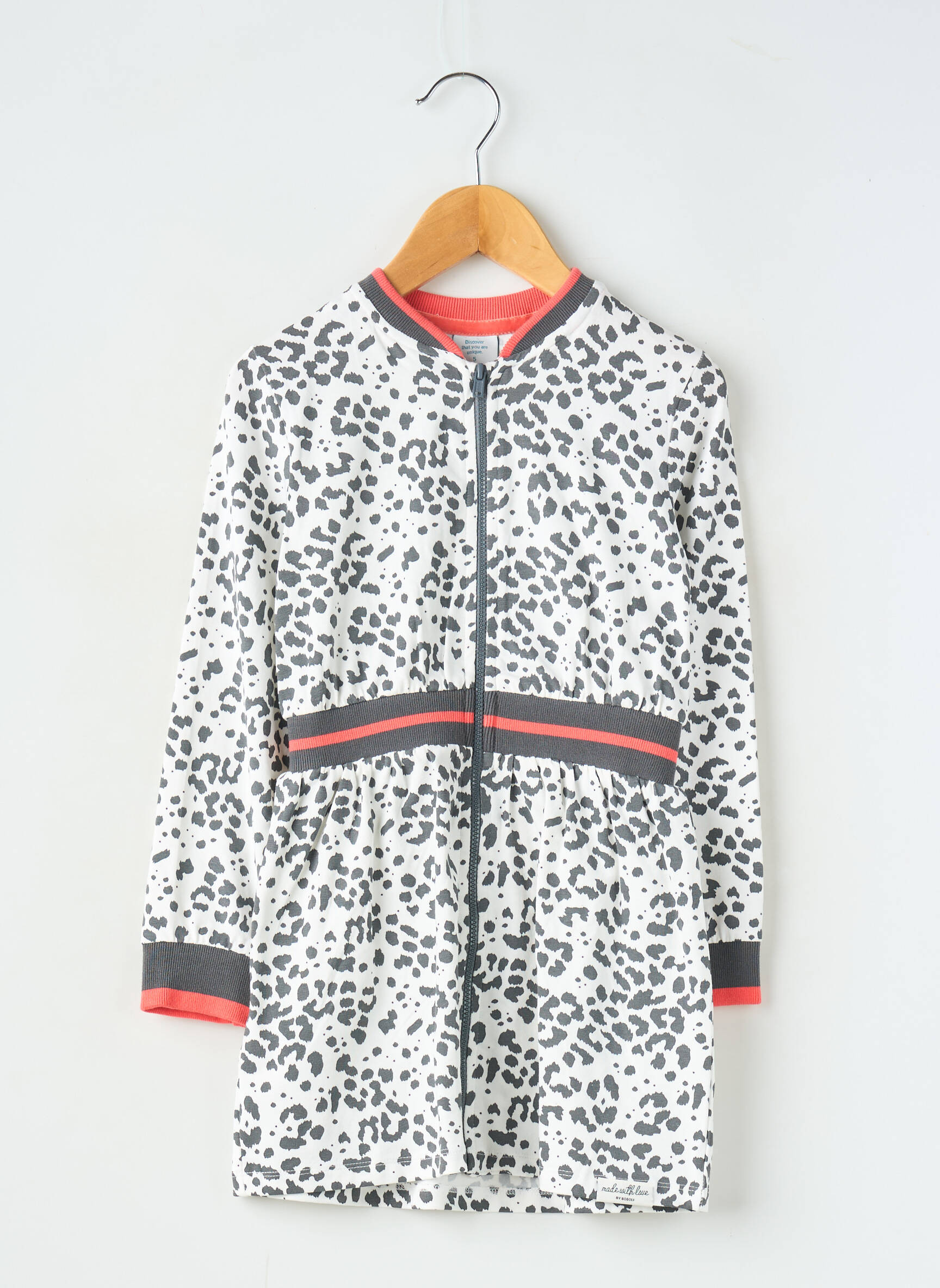 Craquez pour cette veste casual BOBOLI pour fille à prix mini, idéale pour apporter une touche tendance sans se ruiner. Son imprimé léopard noir et blanc, relevé par des bandes contrastées grises et rose fluo au niveau de la taille et des poignets, en fait une pièce pleine de peps qui accompagnera toutes les tenues du quotidien. Fermeture zippée pratique et coupe confortable, c’est la veste indispensable des petits budgets malins qui veulent de la mode tout en faisant des économies.