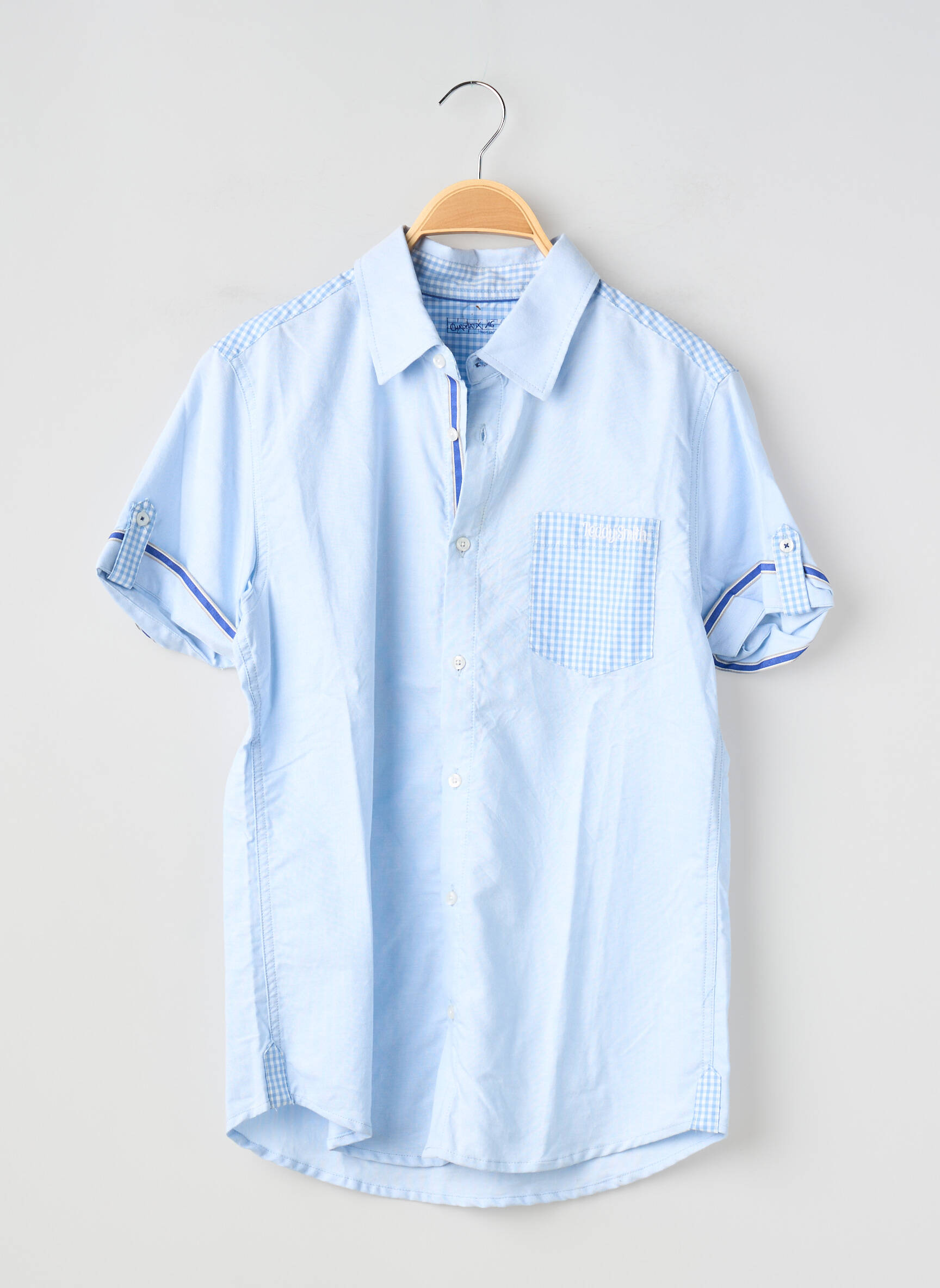 Profitez d’un bon plan mode avec cette chemise manches courtes TEDDY SMITH pour garçon, parfaite pour offrir à votre enfant un look soigné sans vous ruiner. Son coloris bleu clair illuminera toutes les tenues estivales, tandis que sa coupe légèrement arrondie et sa poche poitrine à motif vichy ajoutent une touche tendance facile à porter au quotidien. Les détails soignés, comme le revers aux manches décoré d’un liseré bleu, soulignent la qualité du produit à prix mini idéal pour renouveler la garde-robe sans compromis sur le style.