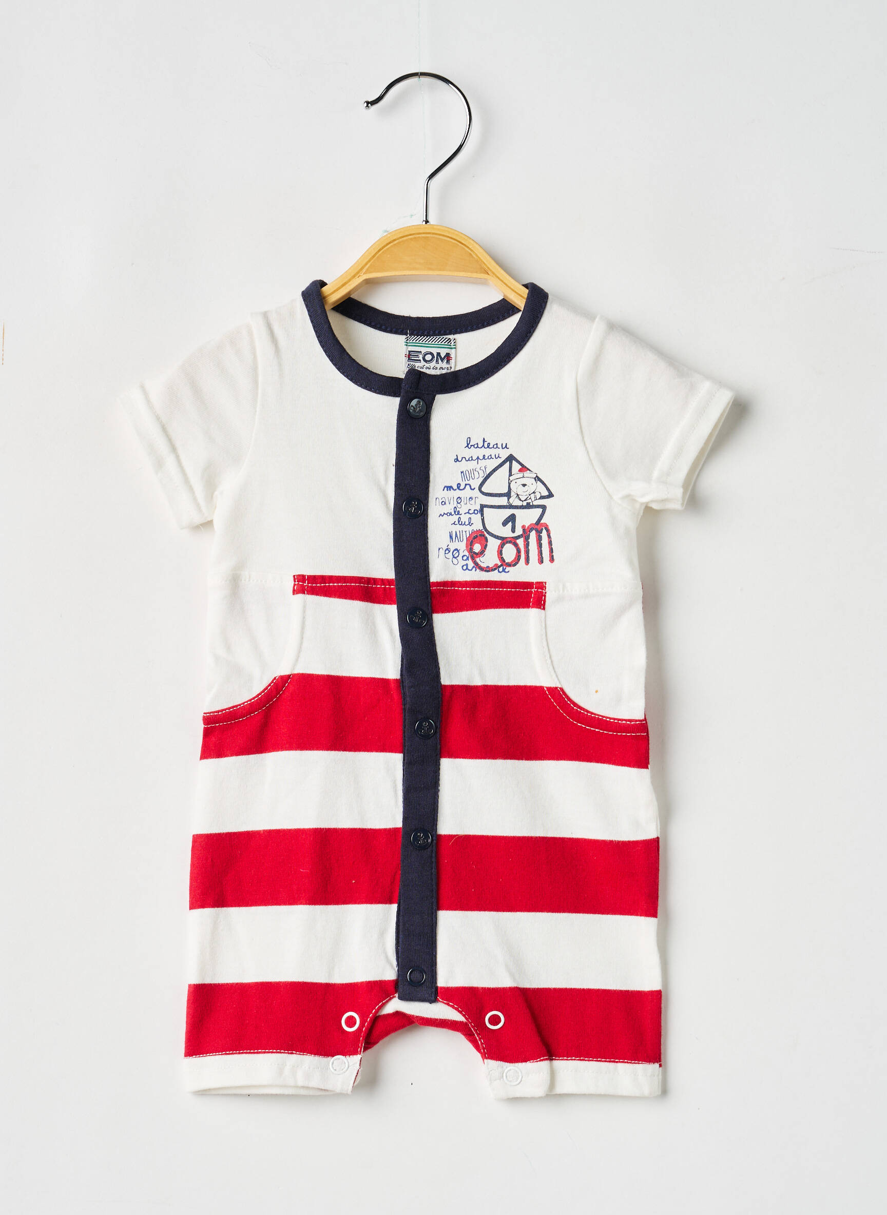 Craquez pour ce combishort garçon signé ELLE EST OU LA MER, une vraie opportunité pour habiller votre enfant avec style à petit prix. Ce modèle aux larges rayures rouges et blanches offre une allure aussi tendance qu’originale, rehaussée par des détails marins brodés sur la poitrine et une boutonnière contrastante très pratique. Idéal pour une tenue estivale confortable et moderne, ce bon plan vous permet de profiter d’un look chic sans vous ruiner.