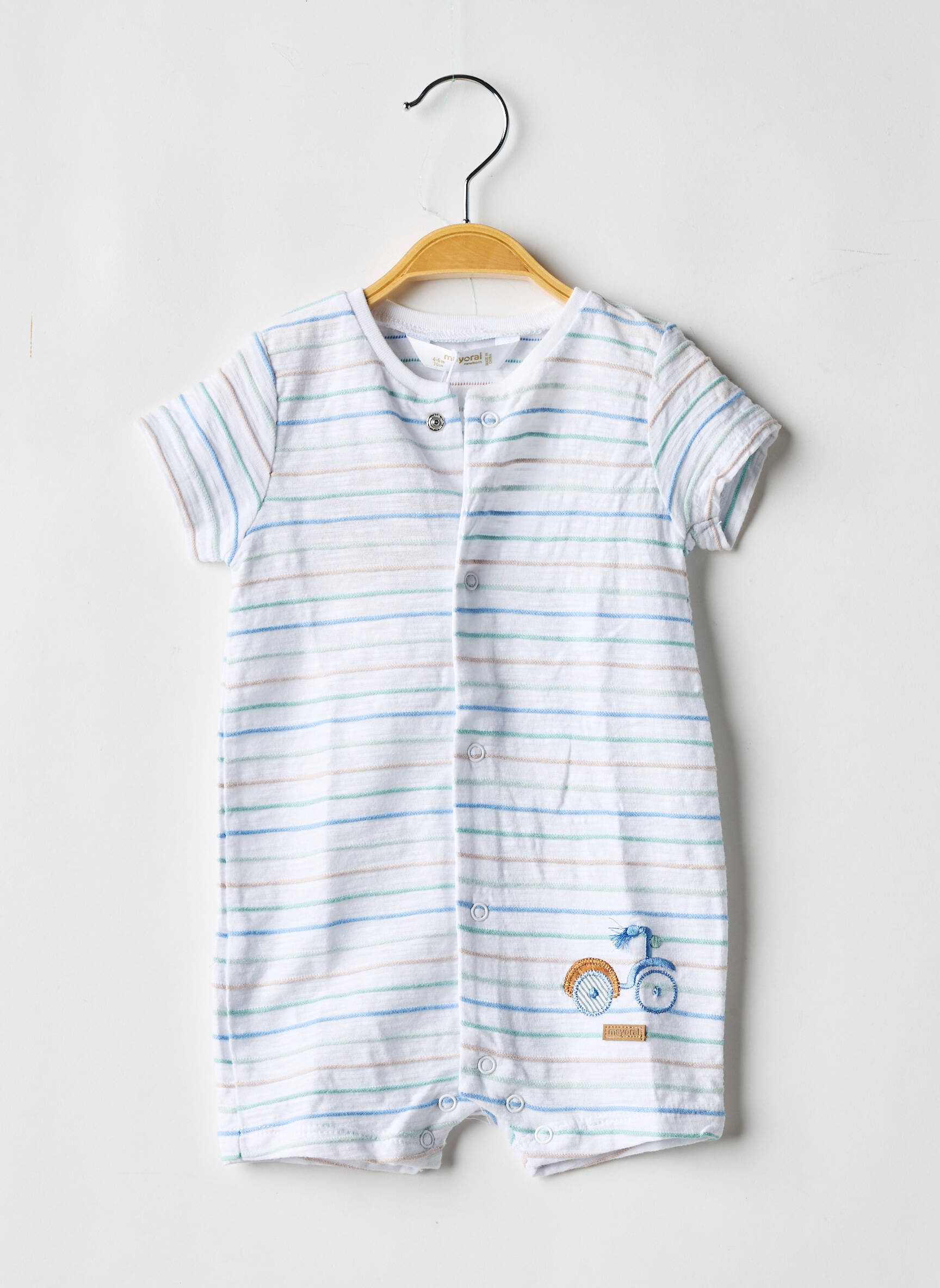Craquez pour ce combishort garçon signé MAYORAL, une véritable bonne affaire pour habiller votre petit avec style sans vous ruiner. Son motif à fines rayures bleues et blanches apporte une touche de fraîcheur parfaite pour la saison, tandis que le petit vélo brodé ajoute une note ludique et tendance. Pratique avec son ouverture à boutons sur le devant, ce modèle garantit un habillage facile au quotidien, le tout à prix mini pour profiter de la qualité MAYORAL à prix de déstockage.