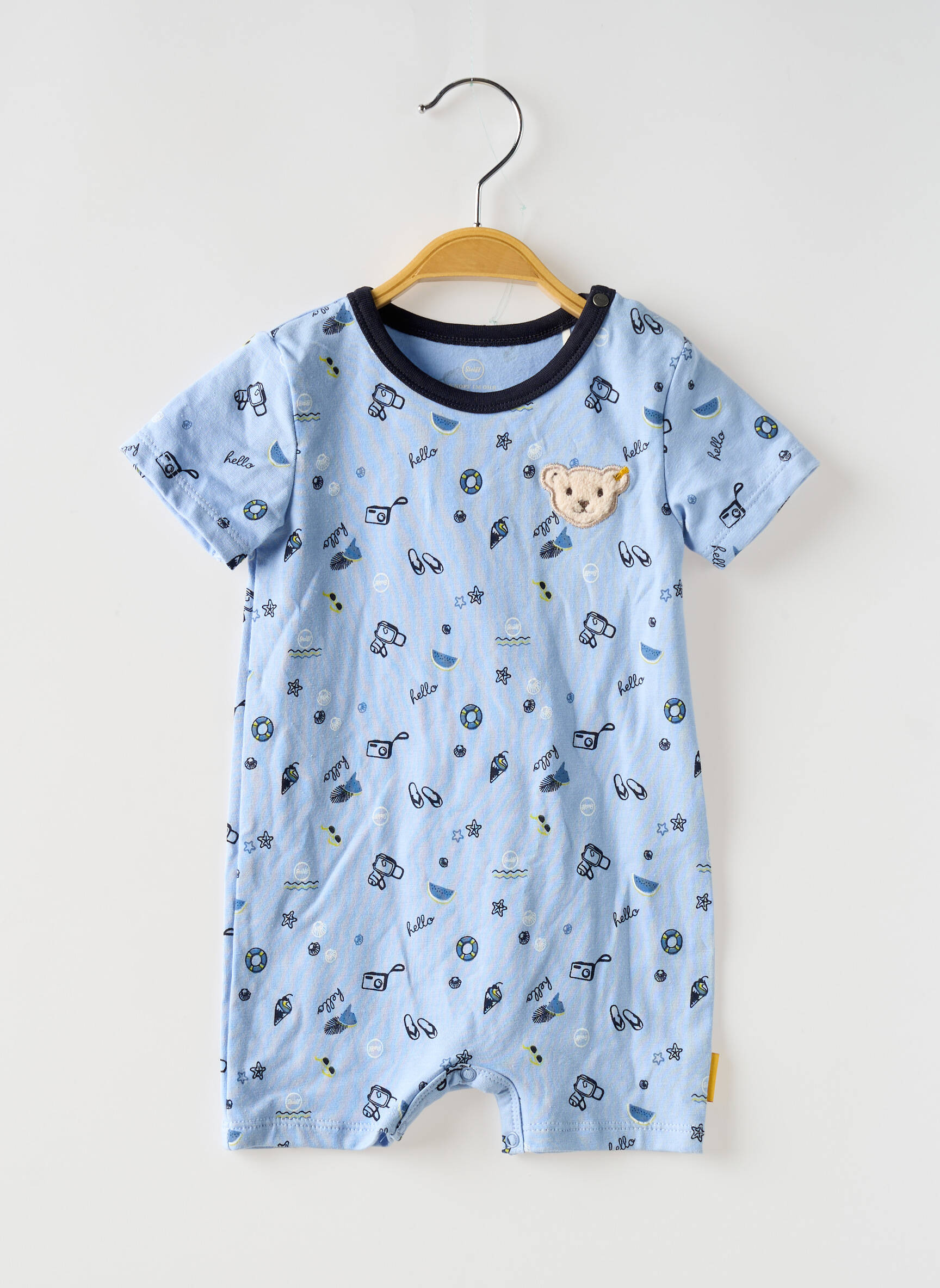 Voici une opportunité à saisir pour habiller votre petit garçon à moindre coût avec ce combishorts STEIFF plein de charme, affichant un délicat coloris bleu agrémenté de motifs ludiques et du célèbre petit ours en écusson, le tout rehaussé par une encolure contrastée qui apporte une touche de modernité à ce basique confortable et pratique pour tous les jours. N’attendez plus pour profiter de ce bon plan et offrir à votre enfant le style STEIFF à petit prix !