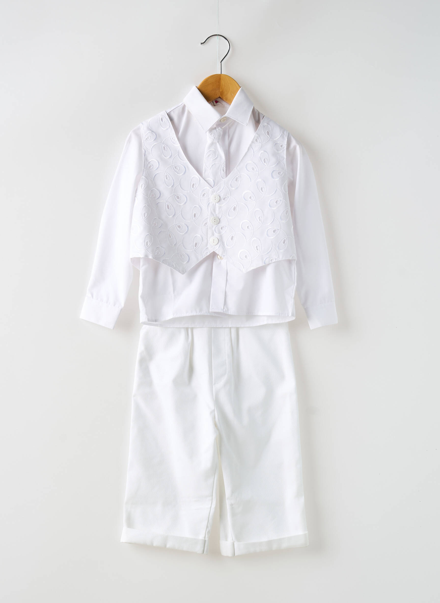 Offrez à votre garçon une tenue élégante à prix malin avec cet ensemble pantalon de la marque CHRISTELLA, idéal pour les grandes occasions sans se ruiner. Ce modèle se compose d’une chemise blanche à manches longues, rehaussée d’un gilet brodé à motifs et d’un pantalon assorti pour un look raffiné. C’est le choix parfait pour faire sensation lors des événements tout en profitant d’une excellente affaire sur votre boutique de déstockage multi-marque.