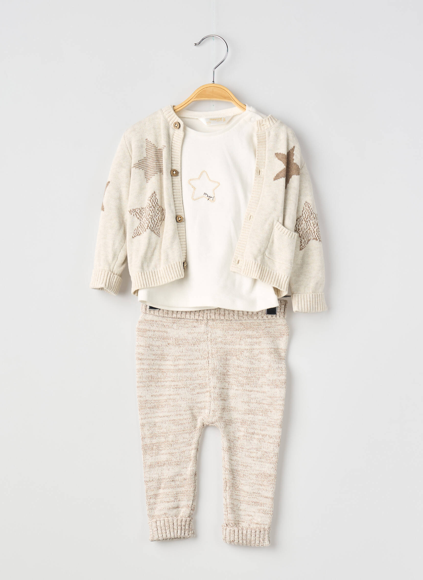 Profitez d’un look stylé à petit prix avec cet ensemble pantalon Mayoral pour garçon, parfait pour habiller votre enfant avec élégance sans vous ruiner. Ce trio composé d’un pantalon chiné doux, d’un t-shirt à motif étoilé discret et d’un gilet assorti avec de jolies étoiles offre un style moderne et confortable, idéal pour les petits aventuriers qui aiment bouger tout en restant à la mode. Voilà une belle occasion de faire rimer économie avec qualité et tendance !