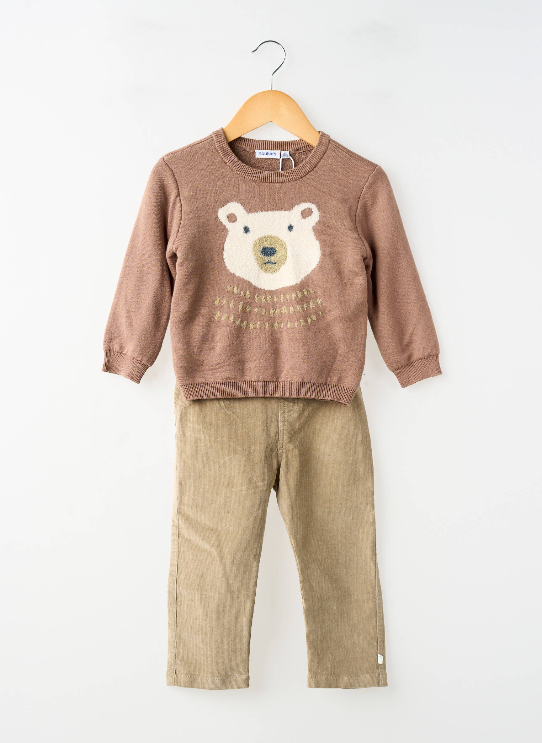 Voilà un ensemble pantalon garçon signé NOUKIE'S, à prix mini pour habiller les petits avec style sans se ruiner. Ce duo malin associe un joli sweat marron orné d’une tête d’ours toute douce à un pantalon beige à la coupe droite, offrant à la fois confort et look tendance pour tous les jours. C’est le bon plan idéal pour faire des économies tout en craquant pour une tenue originale et tendre, parfaite pour accompagner les aventures de votre enfant.