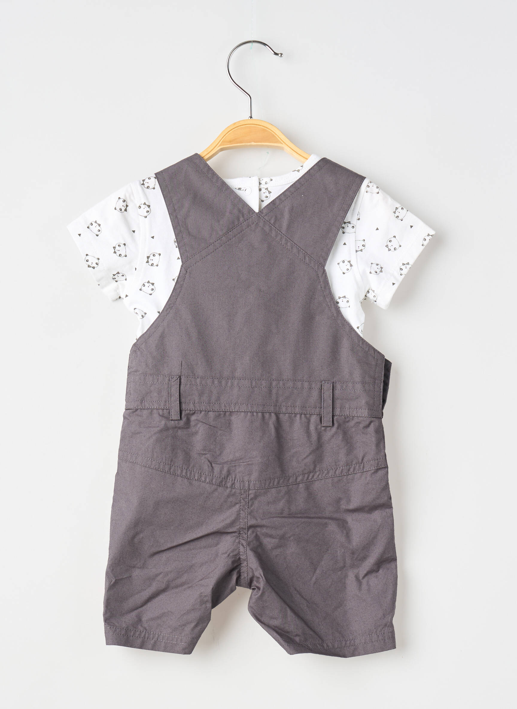 Voici une belle opportunité d’habiller votre petit garçon avec style à prix mini grâce à cet ensemble signé P’TIT BISOU, composé d’un t-shirt blanc aux motifs craquants et d’une salopette gris ardoise douce au toucher, rehaussée par une broderie "Bonjour" sur le devant ; un achat malin pour allier confort et économies sans compromis sur la tendance.