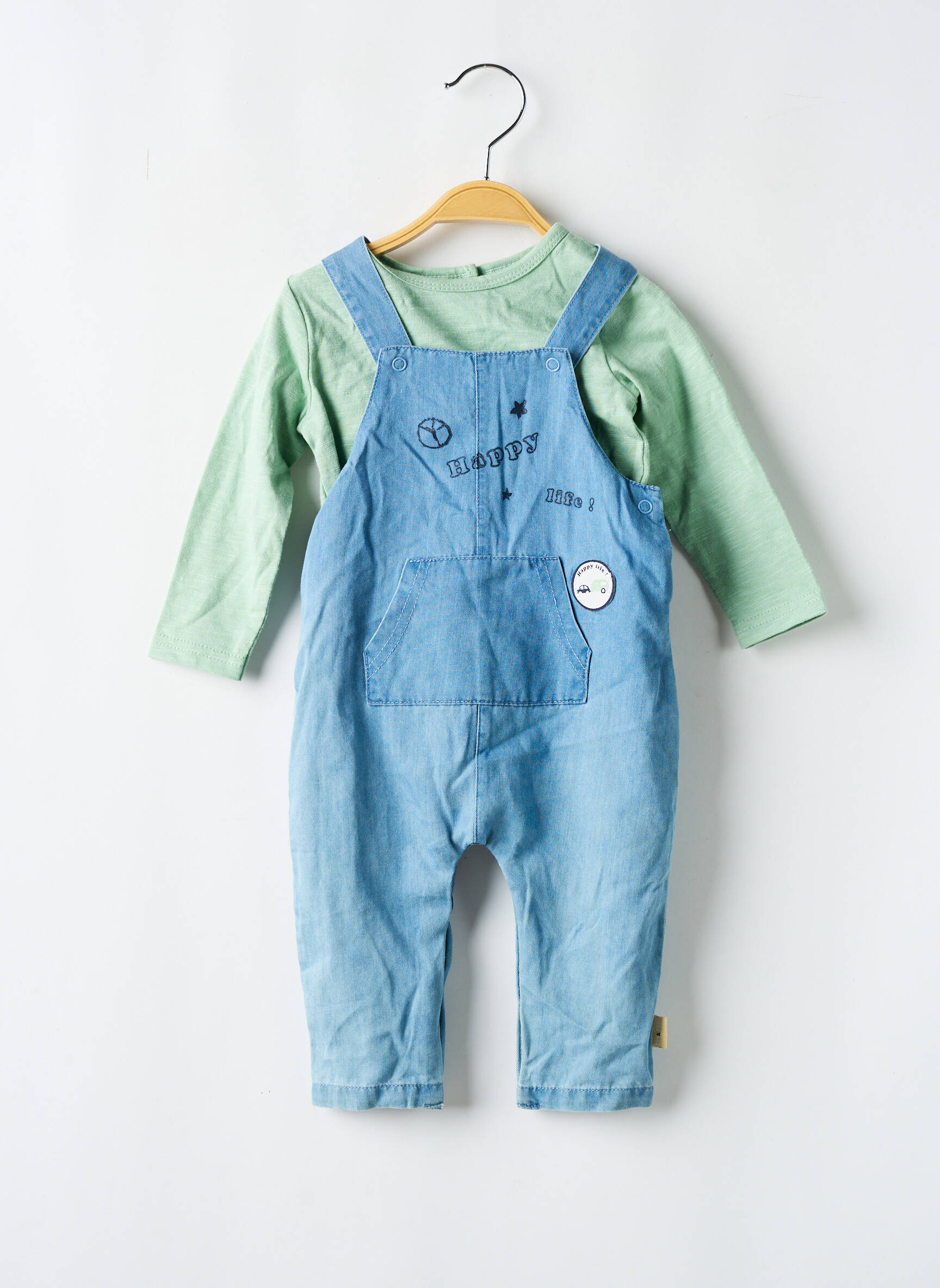 Voici le bon plan à ne pas manquer pour habiller votre garçon avec style sans vous ruiner : cet ensemble pantalon de la marque P'TIT BISOU allie confort et tendance grâce à son t-shirt manches longues vert pâle associé à une adorable salopette en jean clair ornée de petits motifs ludiques. Pratique et facile à porter au quotidien, cet ensemble est idéal pour les petits explorateurs et ravira les parents à la recherche d’une tenue à petit prix qui ne sacrifie ni la qualité ni la mode.