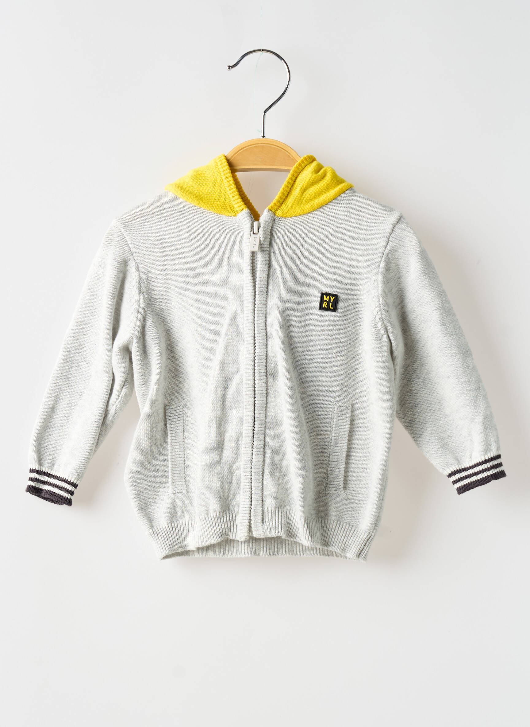 Profitez d’un vrai bon plan avec ce gilet à manches longues pour garçon signé Mayoral, idéal pour allier confort et style au quotidien à petit prix. Ce modèle arbore une coupe classique et pratique avec une fermeture zippée sur le devant, des finitions côtelées avec rayures contrastées aux poignets et une capuche doublée d’un jaune vif qui apporte une touche dynamique à l’ensemble. Son coloris gris clair s’accorde facilement avec toutes les tenues, et le discret écusson sur la poitrine souligne son look tendance et sport. Parfait pour habiller votre enfant sans dépenser trop, c’est la pièce incontournable de la saison à saisir en déstockage !