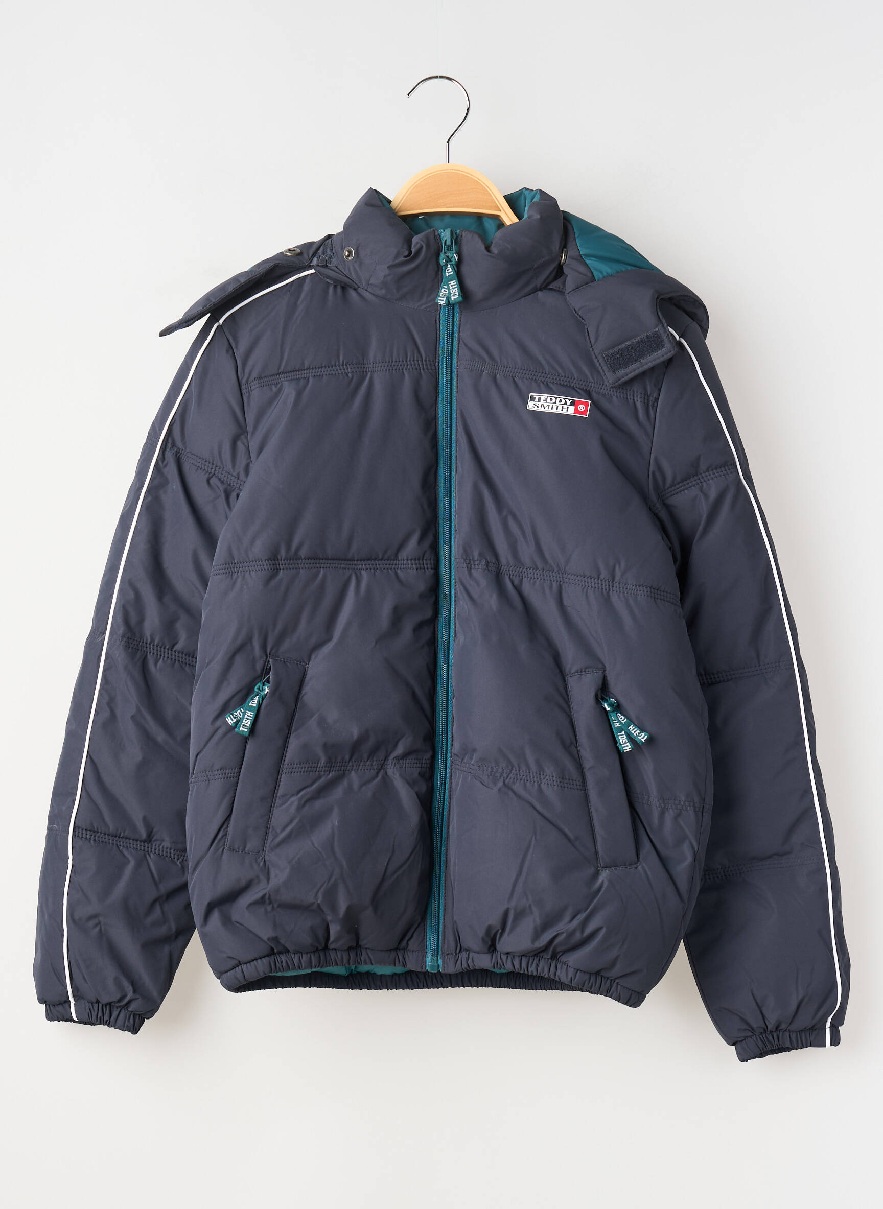 Profitez d’une vraie bonne affaire avec cette doudoune TEDDY SMITH pour garçon, au look moderne et sportif, idéale pour affronter le froid tout en restant stylé sans se ruiner. Son coloris bleu marine, relevé par une touche turquoise sur la fermeture et les poches, apporte une note tendance, tandis que la capuche et les finitions soignées offrent un confort optimal pour l’hiver. C’est le choix parfait pour équiper votre enfant à petit prix avec une pièce de marque qui allie praticité et style au quotidien.