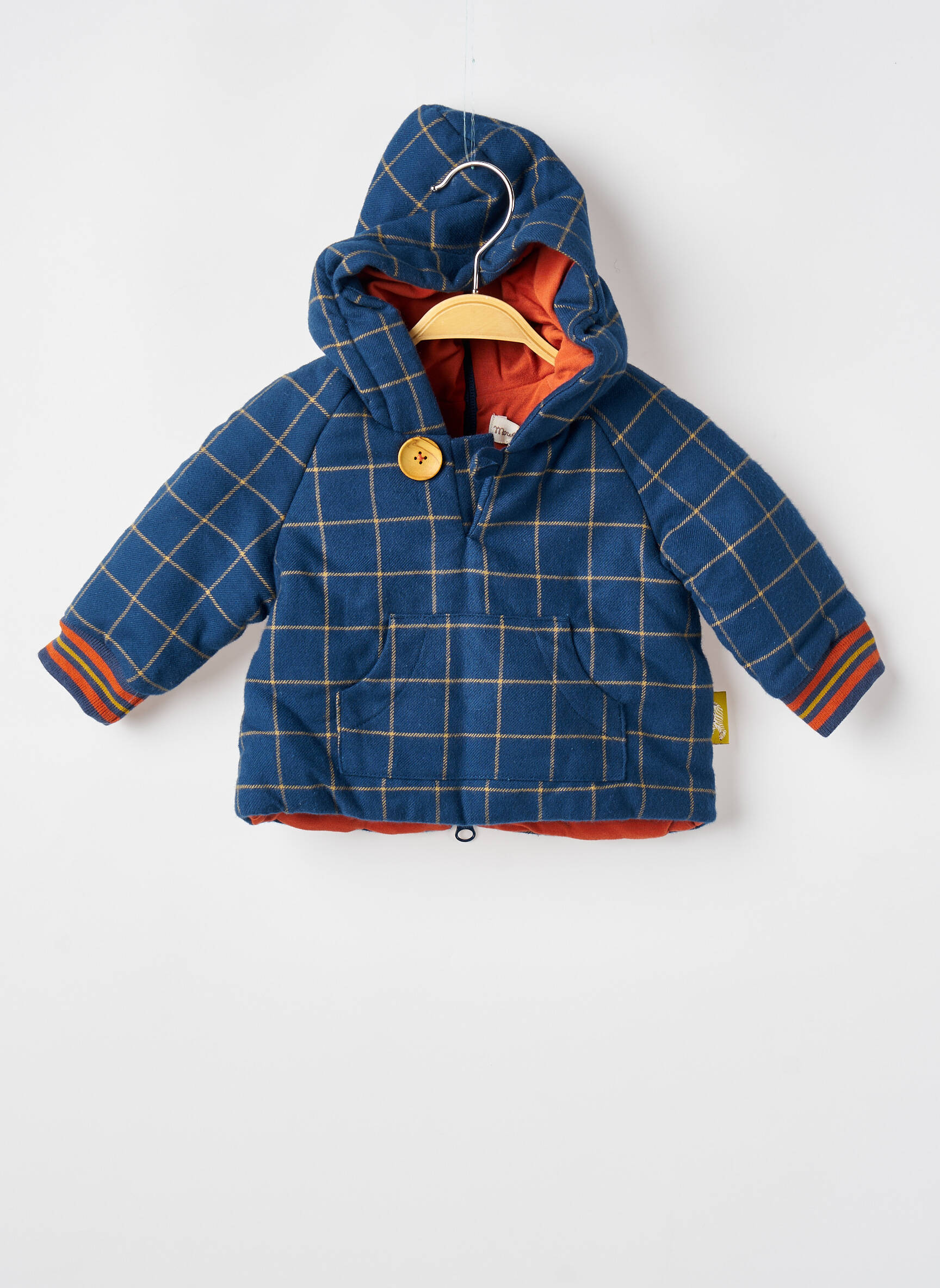 Quand le confort rencontre le style, ce manteau court pour garçon de chez MOULIN ROTY devient une pièce essentielle pour affronter les journées fraîches avec élégance ; sa coupe pratique est rehaussée par un motif à carreaux bleu profond où s'entrelacent des lignes claires, tandis qu’une capuche douillette garantit chaleur et protection contre le vent, complétée par une doublure intérieure orange vif qui apporte une touche dynamique et chaleureuse, sans oublier les poignets rayés qui ajoutent une note sportive et actuelle à cet ensemble à la fois ludique et fonctionnel.