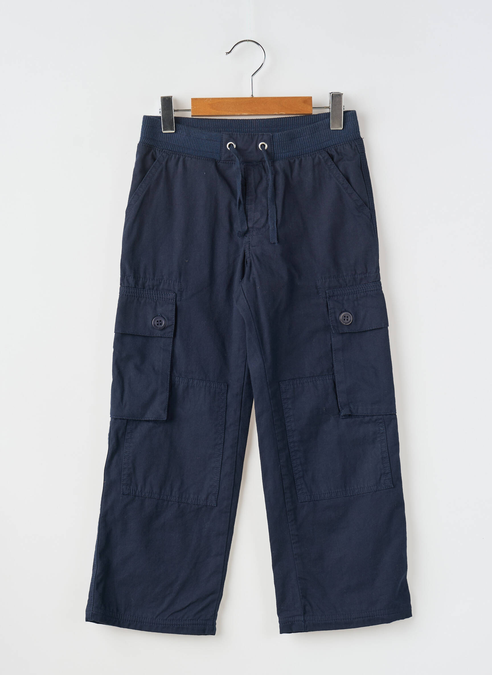 Profitez d'un super bon plan avec ce pantalon cargo pour garçon de la marque PETIT BATEAU, parfait pour allier style et confort au quotidien sans se ruiner. Conçu dans une teinte bleu marine classique, il est doté d'une taille élastiquée avec cordon de serrage pour un ajustement idéal et de grandes poches latérales à rabat boutonné, pratiques pour emmener tous ses petits trésors. Sa coupe droite et décontractée apporte une grande liberté de mouvement, idéale pour les aventures et les jeux du quotidien, le tout à un prix très attractif sur notre site de déstockage.