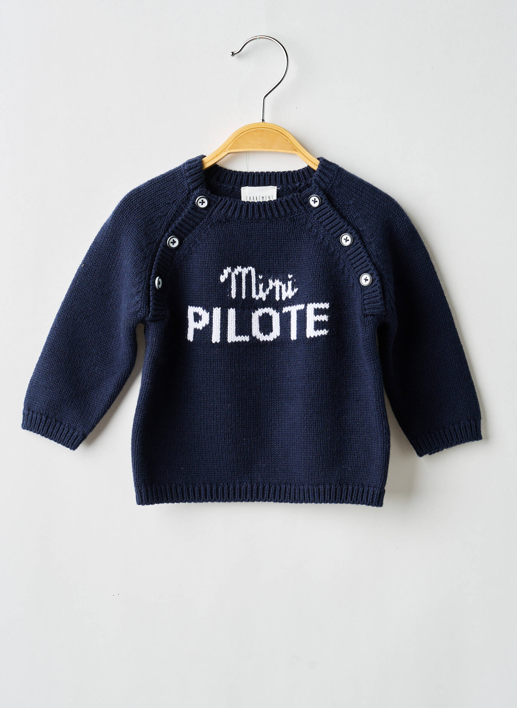 Craquez pour ce pull garçon signé Carrément Beau à petit prix : avec son message "Mini Pilote" en lettres contrastées sur un joli bleu marine, ce modèle allie confort, tendance et praticité grâce à son encolure boutonnée, parfait pour offrir style et douceur à votre enfant tout en faisant des économies sur un vêtement de marque.