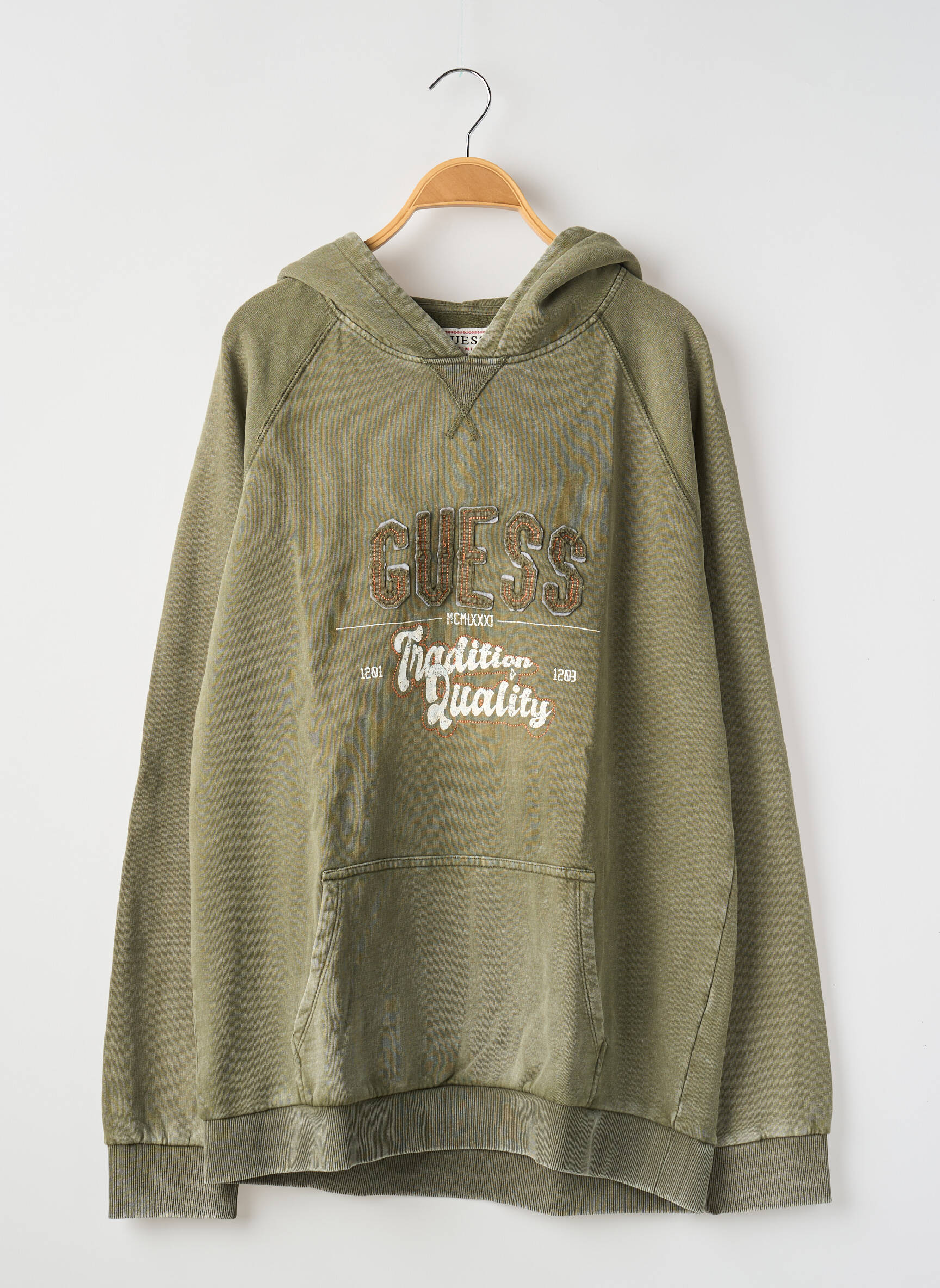 Faites une belle économie en offrant à votre garçon ce sweat-shirt à capuche GUESS, parfait pour un look tendance sans se ruiner. Son coloris kaki et sa coupe décontractée apportent une touche casual incontournable tandis que l’impression effet vintage et la poche kangourou font de ce modèle un basique moderne à prix mini.