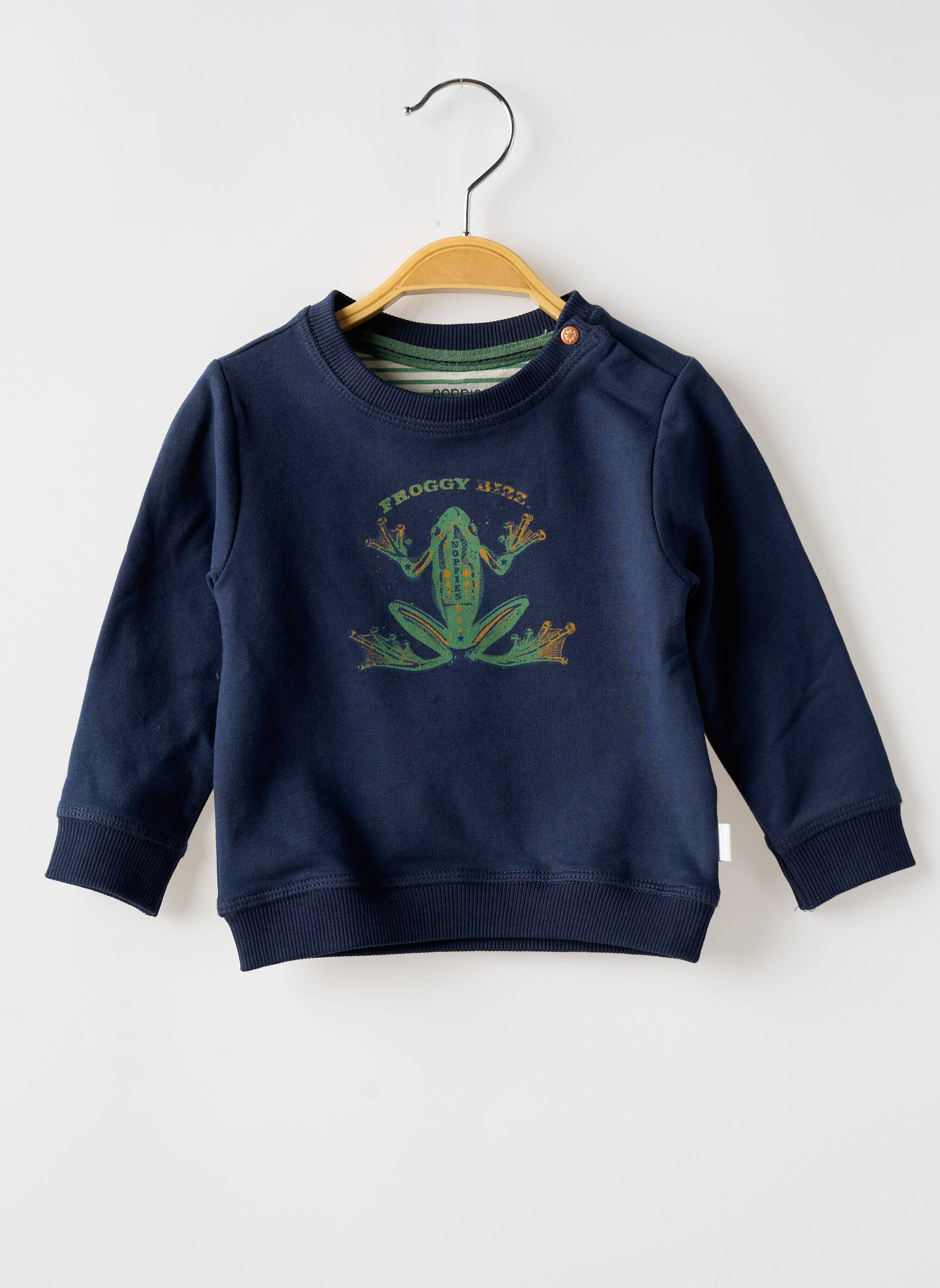 Voici une occasion idéale de faire plaisir à votre garçon sans vous ruiner grâce à ce sweat-shirt NOPPIES à prix mini, habillé d’un bleu profond et orné d’un motif grenouille rigolo au centre pour apporter une touche de fantaisie à ses tenues du quotidien. La coupe confortable, les finitions soignées et les boutons pression à l’épaule simplifient l’enfilage, ce qui en fait un basique incontournable pour profiter d’un bon plan tout en assurant style et praticité.