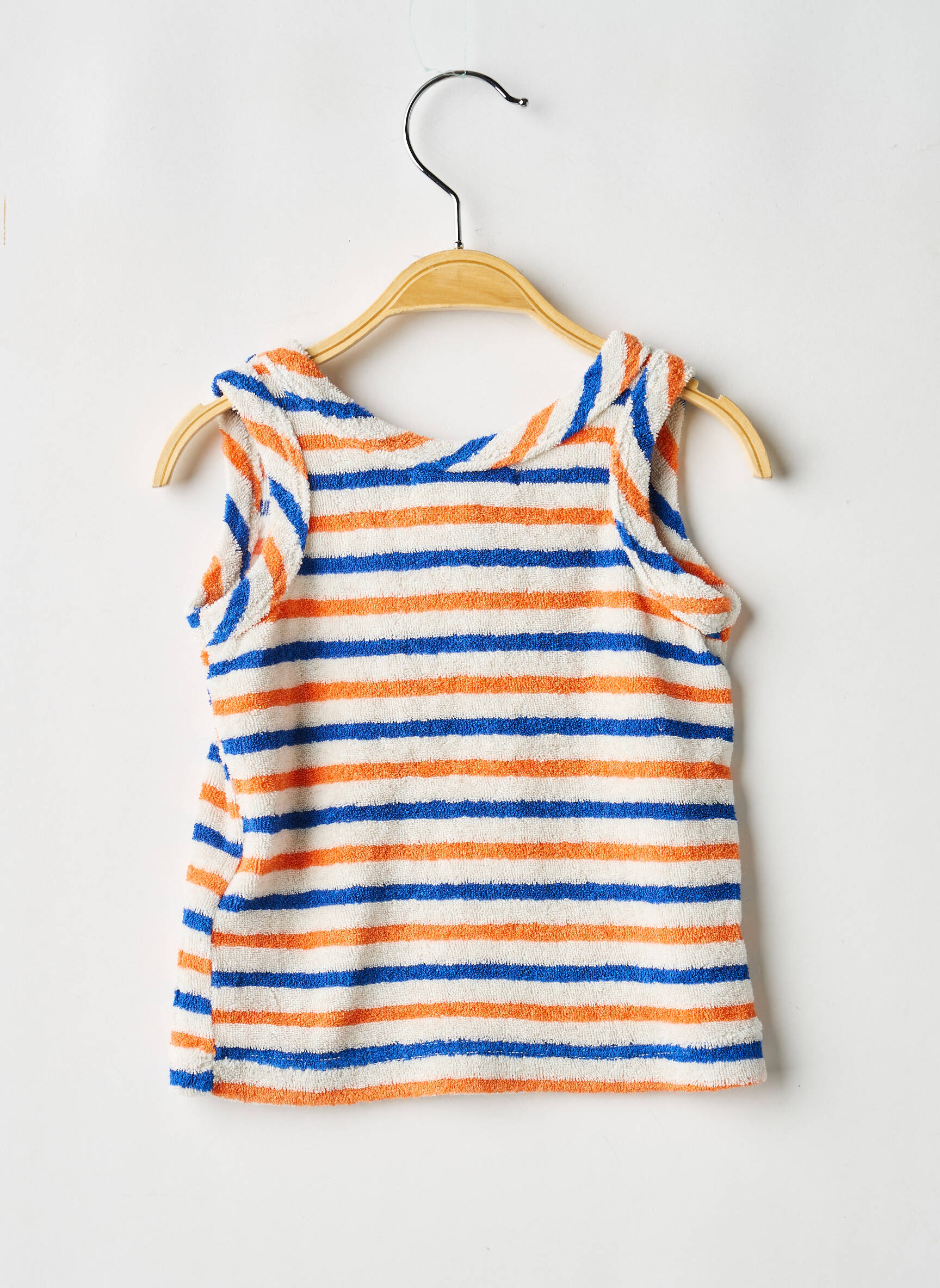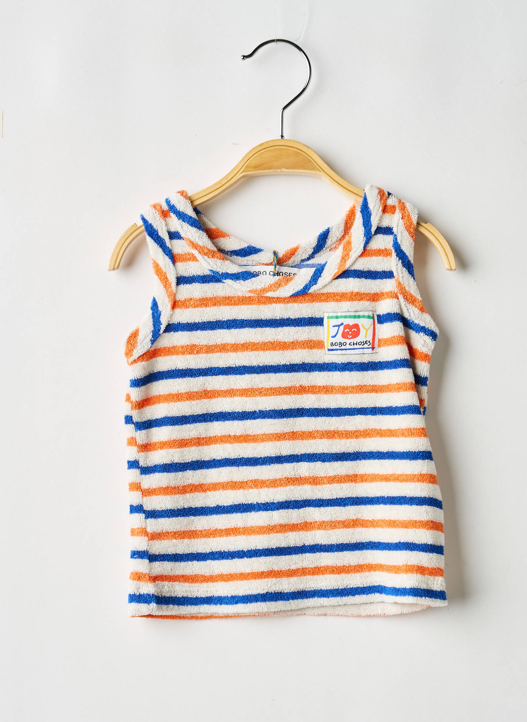 Craquez pour ce débardeur garçon BOBO CHOSES à prix tout doux, parfait pour renouveler le dressing d’été sans se ruiner. Avec ses rayures tendances orange, bleu et blanc et son petit patch coloré sur la poitrine, il offre un look décontracté et playful qui donne envie de profiter pleinement des beaux jours. C’est le choix malin pour les parents à la recherche d’une pièce originale et stylée sans compromis sur le budget.
