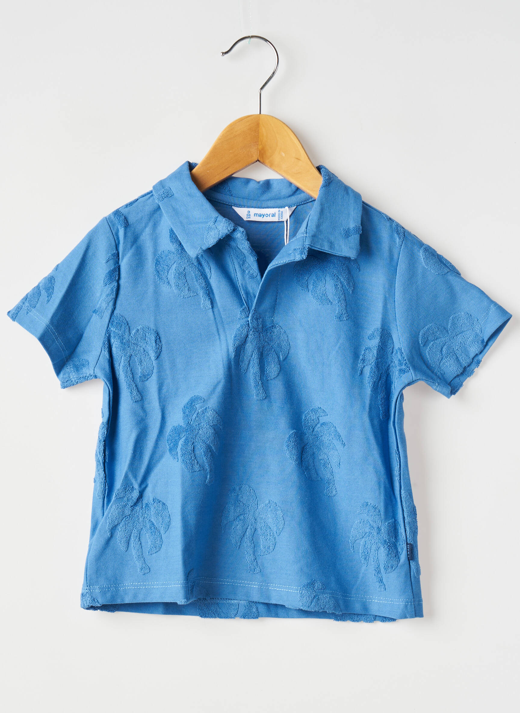 Profitez d’une offre exceptionnelle avec ce polo Mayoral pour garçon à petit prix, idéal pour allier style et économie. Son coloris bleu lumineux apporte une touche estivale tandis que le motif discret de palmiers en relief donne une note originale et tendance, parfait pour accompagner toutes les tenues du quotidien ou des vacances.