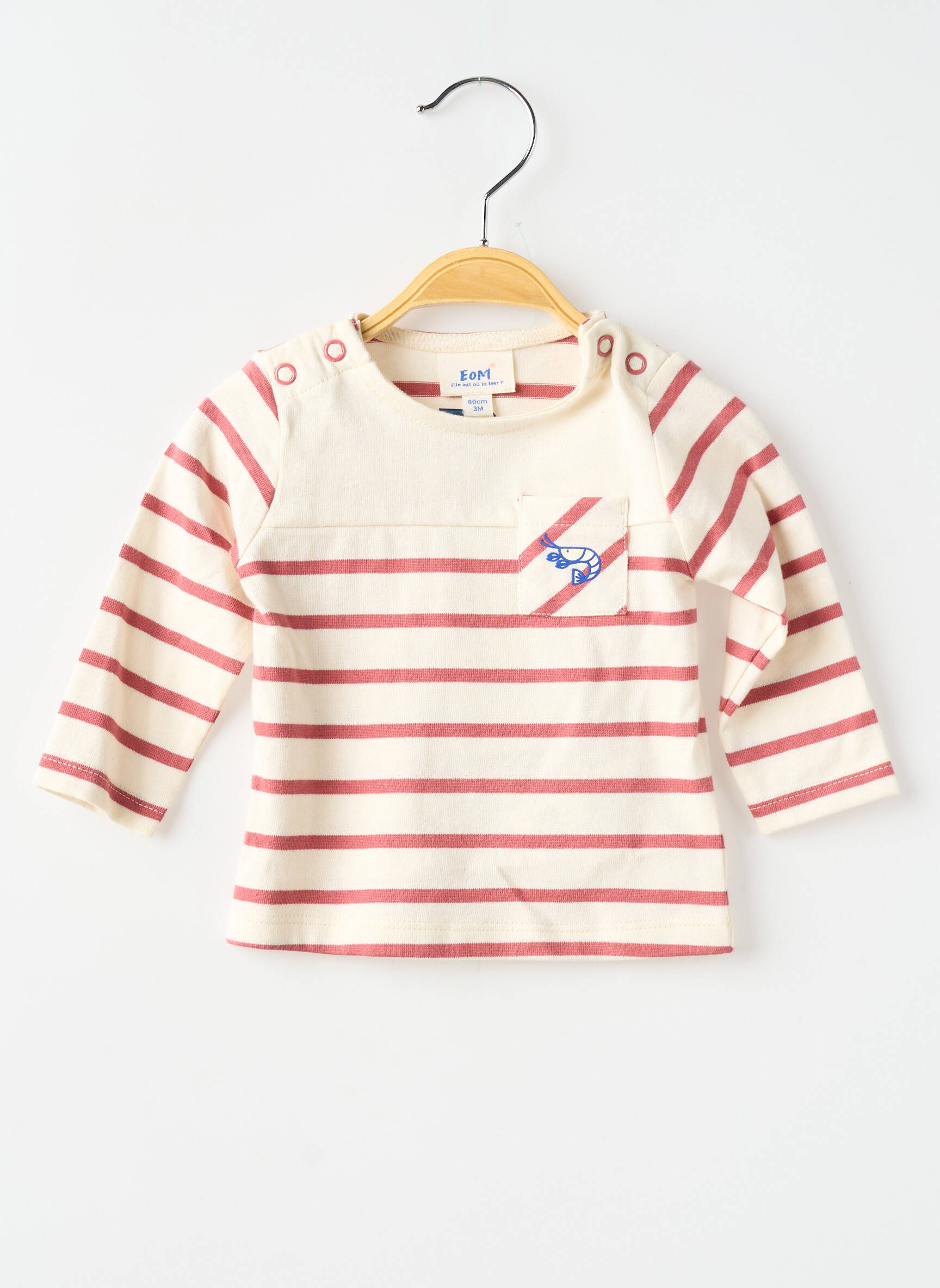 Profitez d’une vraie affaire avec ce T-shirt garçon ELLE EST OU LA MER, parfait pour offrir à petit prix un style marin plein de fraîcheur. Ses rayures rouges sur fond écru s’accompagnent d’un motif avion brodé sur la poitrine, idéal pour faire voyager l’imagination des petits. Les boutons pression sur les épaules assurent un habillage facile tout en ajoutant une touche pratique au quotidien, le tout à un prix malin qui permet de se faire plaisir sans se ruiner.