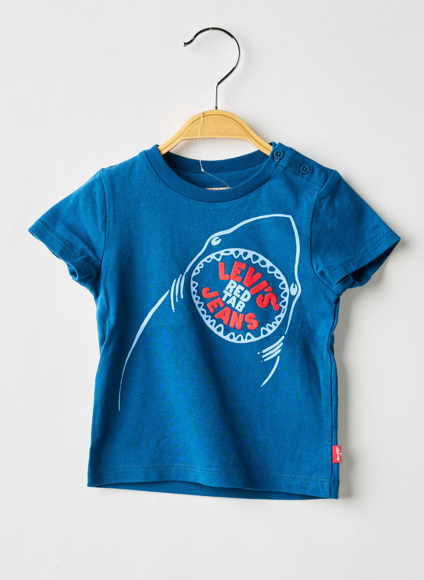 Profitez d'une aubaine sur ce t-shirt LEVIS pour garçon : un modèle plein de peps avec son imprimé requin original et dynamique, qui met en valeur le logo emblématique de la marque dans la gueule du requin, sur un fond bleu éclatant facile à assortir au quotidien. C’est le choix malin pour un look tendance à petit prix tout en offrant un vêtement confortable et stylé, parfait pour les aventuriers en herbe.