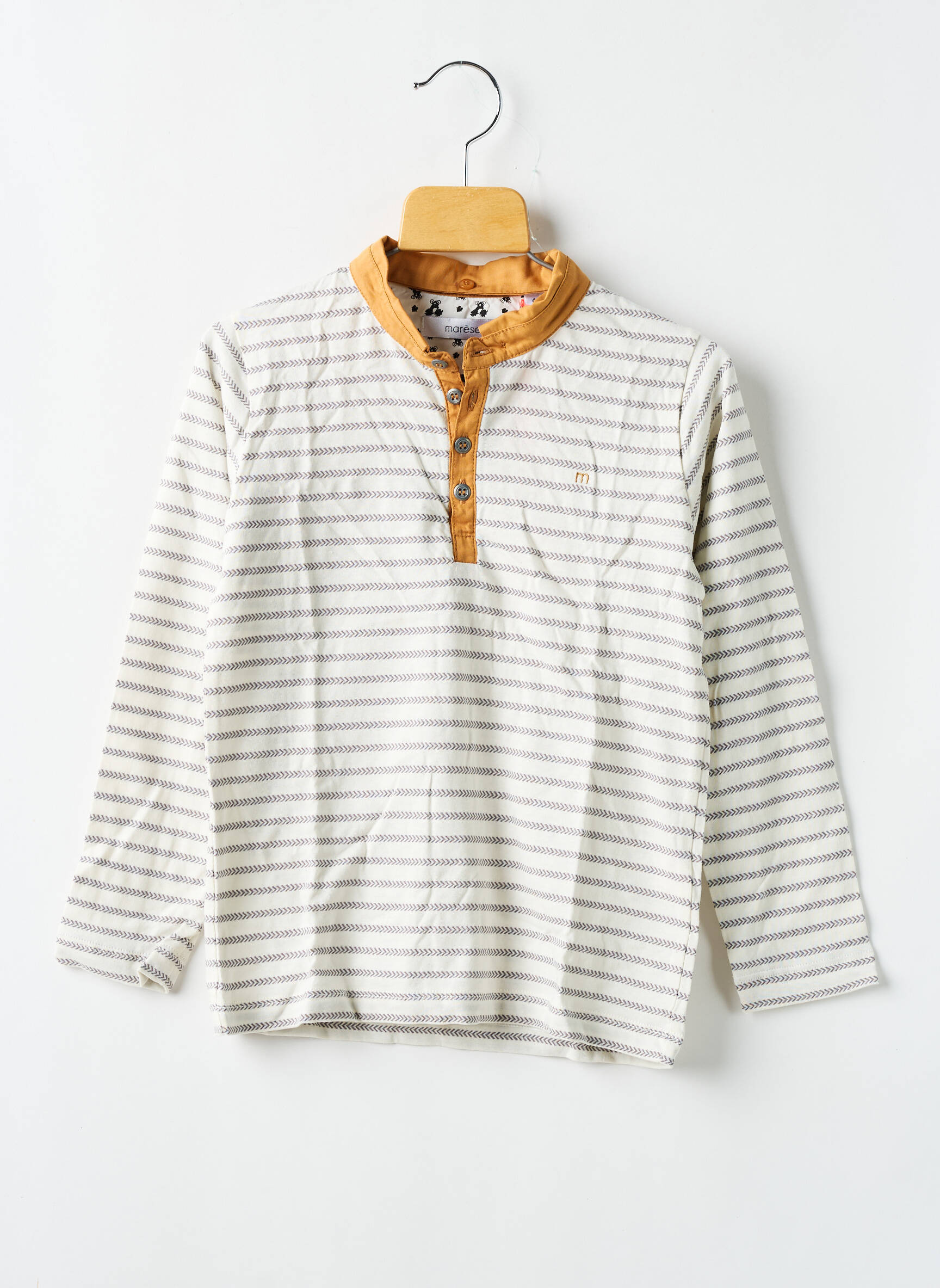 Profitez d’un excellent rapport qualité-prix avec ce T-shirt garçon de la marque Marese, idéal pour allier style et économies. Son motif à fines rayures grises sur fond écru apporte une touche moderne et discrète, tandis que le col tunisien et ses boutons aux détails contrastants couleur moutarde offrent un petit plus tendance et original. Ce modèle à manches longues, confortable et facile à porter au quotidien, est la bonne affaire du moment pour renouveler la garde-robe de votre enfant sans vous ruiner.