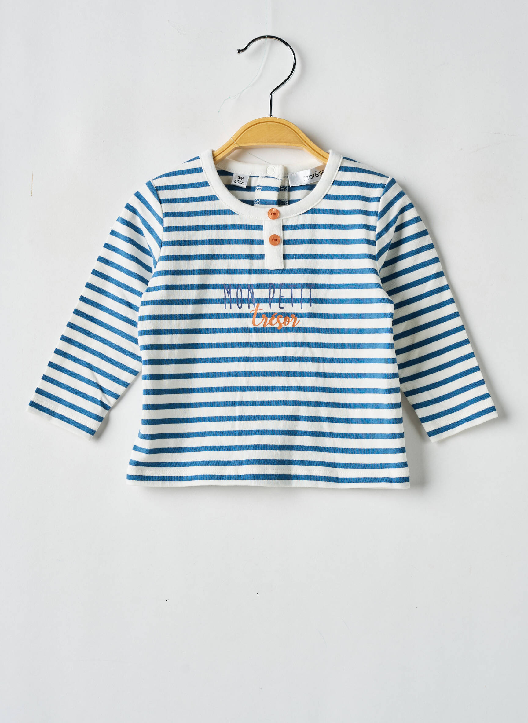 Craquez pour ce T-shirt garçon de la marque Marese à petit prix, idéal pour offrir un look casual à votre enfant sans vous ruiner. Avec ses rayures bleues et blanches et son détail original brodé sur la poitrine, il apporte une touche marine tendance, tout en assurant confort et style au quotidien. Profitez de cette belle opportunité pour renouveler la garde-robe de votre garçon à prix malin !